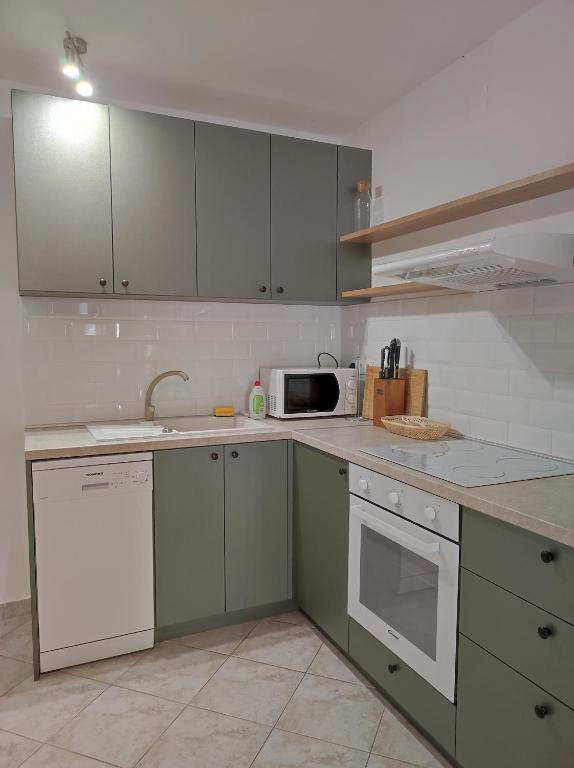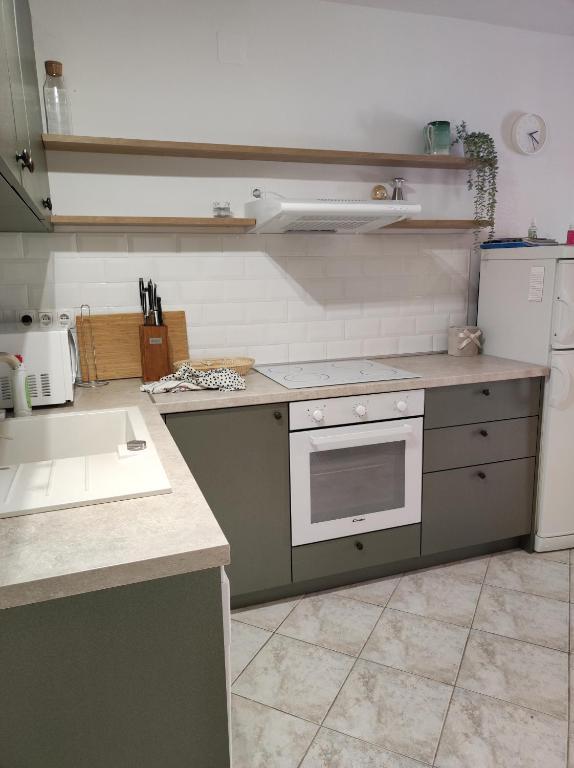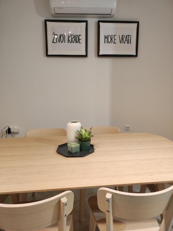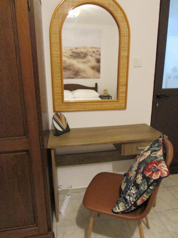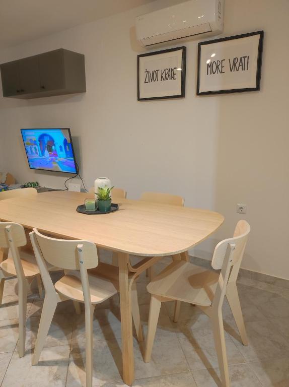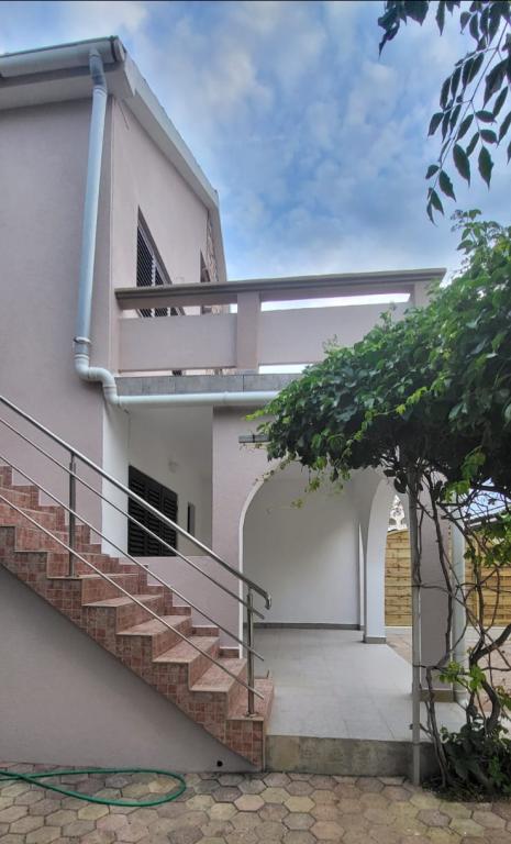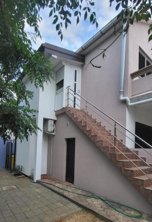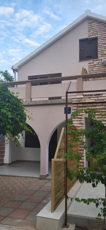 Dvojna kuća koja se sastoji od prizemlja i kata. U sklopu je i privatni parking (za 2 automobila) i popločano dvorište. Kuća je izgrađena prije 20 godina i djelomično renovirana prošle godine. Prizemlje se sastoji od kuhinje s blagovaonom, dnevnog boravka, kupaonice i terase (skrivene od izravnog sunčevog svjetla i ograđene zelenilom). Etaža je s prizemljem povezana vanjskim stepenicama. Kat se sastoji od dvije spavaće sobe, balkona, malog wc-a s tušem i zatvorenog hodnika. Prva soba je opremljena starinskim namještajem iz obiteljske baštine u kombinaciji s modernim novim komadima. Druga soba je opremljena jednostavnim modernim bijelim namještajem. Kuća je prostrana i nudi sve što vam je potrebno za ugodan i opuštajući boravak. VAŽNO: *VODA IZ SLAVINE NIJE SAMO SIGURNA ZA PIĆE *OPSKRBA VODOM JE NA PODZEMNOJ PUMPI I MALA BUKA JE MOGUĆA KOD UPOTREBE VODE *NEKE STAVKE MOGU BITI DRUGAČIJE NEGO NA SLICI ZBOG ZAMJENE I ČIŠĆENJA
