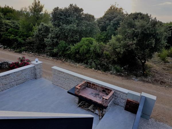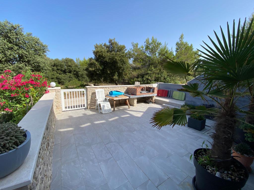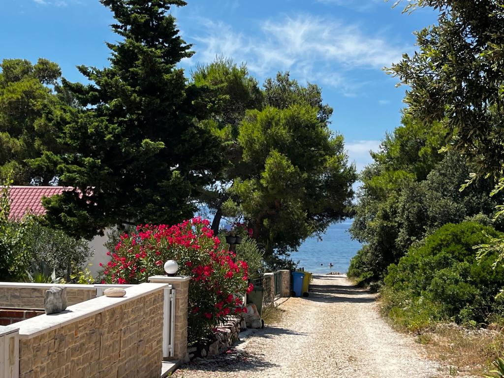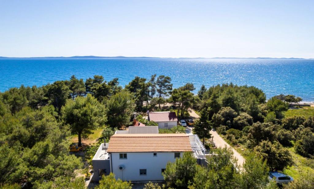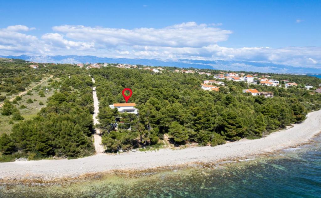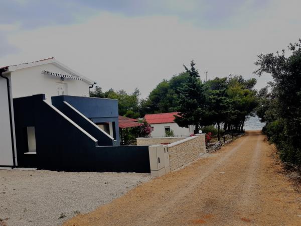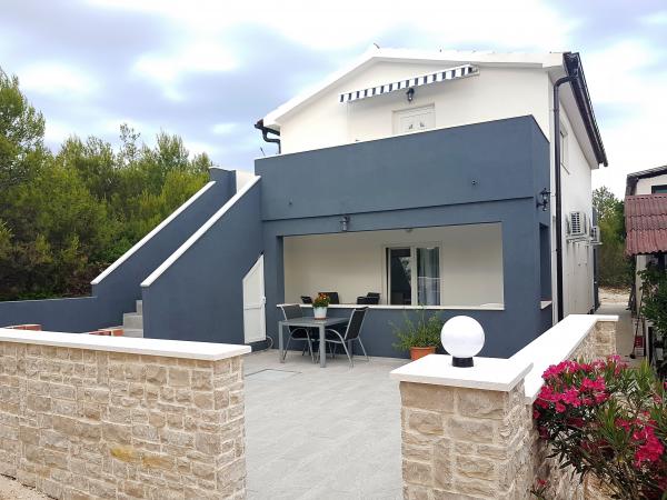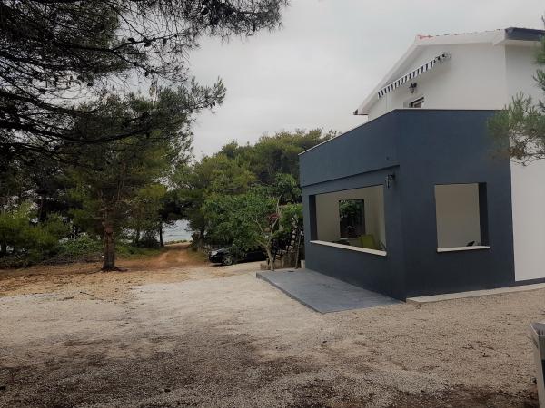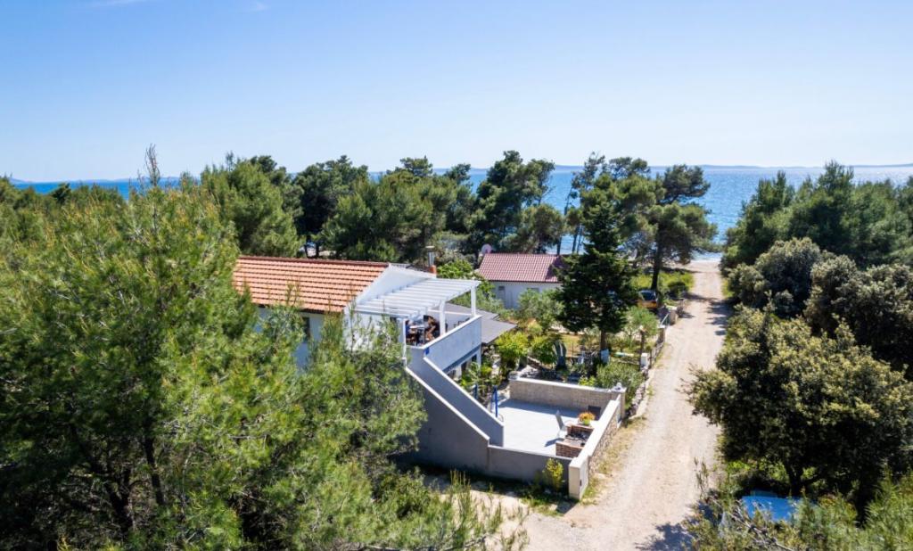 Kuća se nalazi u borovoj šumi 35 m od mora, na kraju Vira, Mirna ulica, idealno za odmor jer smo daleko od buke gradskih plaža, kuća ima kat gdje se nalazi dvi spavaće sobe s velikim dnevnim boravkom, wc, tuš, i vešmašina kuhinja je opremljena sa svim potrebnim stvarima, mikrovalna, kafe aparat, kuhalo za vodu te suđe za kuhanje, dvije terase, u prizemlju kuće dva apartmana, svaki je opremljen s kuhinjom wc i tušom, jedna spavaća soba i dnevni boravak, apart ima svoju terasu, te dodatnu terasu s roštiljom, kuća može primiti od 10 do 13 ljudi, . Bit će nam drago ugostiti vas. Bebi krevetić dostupan.