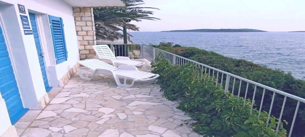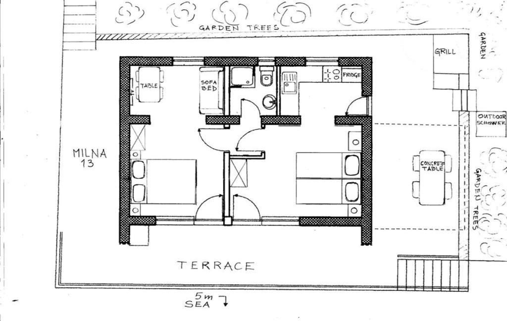 Iznajmljuje se kuća uz more; iznimna lokacija - prvi red do mora, uvala Milna(otok Vis), idealna za obitelj. Kuća je samostojeća, unutrašnje površine od 50m2, okružena terasom od 60m2, te vrtom(160m2) sa zelenilom koje vam osigurava privatnost i ugodan odmor. Odmah do kuće, na 5 metara od terase, možete plivati, roniti ili skakati u more. Kad se vratite iz mora, tu je vanjski tuš. Na terasi su dvije ležaljke, zidani roštilj, te betonski stol za sjedenje i blagovanje s pogledom na morsko plavetnilo u kojem možete uživati cijeli dan. Dio terase iznad stola i zidanog roštilja je natkriven, te osigurava sjenu/zaštitu cijeli dan. Kuća je klimatizirana, ima Wi-Fi neograničeni internet, LCD Tv, štednjak s plinskim i električnim kuhalima, veliki frižider(230 litara), te sve ostalo potrebno za kuhanje/pečenje i serviranje. Privatni parking je udaljen 250m; do kuće uz obalu vodi betonski pješački put.
