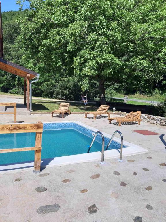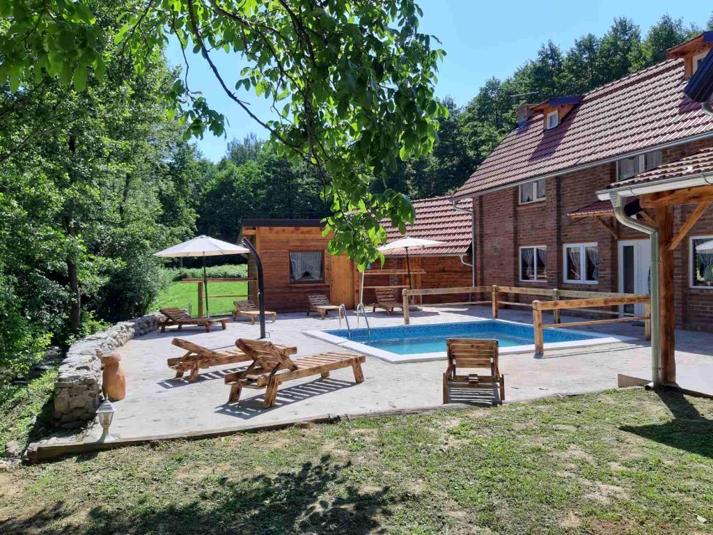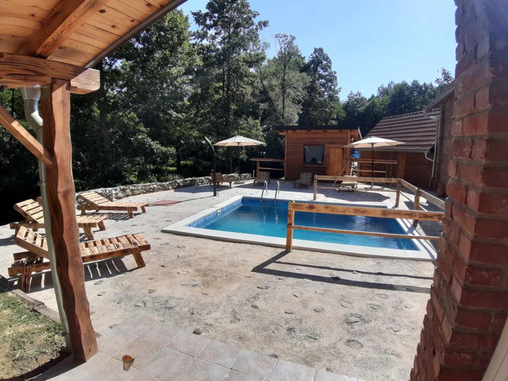 Vila s bazenom uz rijeku, dva dnevna boravka, 4 sobe i 8 galerija, pečenjar, sauna, zimi drvena kupelj, biljar, stolni nogomet, pikado, trampolin, klackalica, ljuljačka, ležaljke....