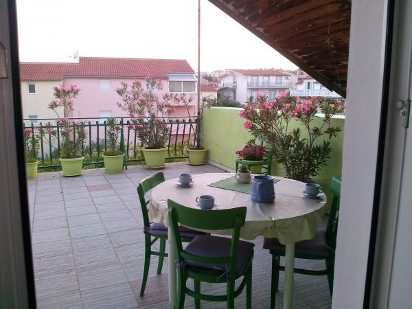 Iznajmljujem simpatično i moderno uređen apartman u potkrovlju obiteljske kuće. Apartman je veličine 130 m2, ima dvije sobe s 5 ležaja, kuhinju, kupaonu, dnevni boravak, sve kompletno opremljeno. Terasa je 60m2, uređena za romantična večernja druženja. Apartman se nalazi u mirnom djelu mjesta, a sve vam je nadohvat ruke, trgovine, tržnica, restorani, ambulanta, banke...šljunčana plaža, (Plava plaža) savršeno za idealan odmor.