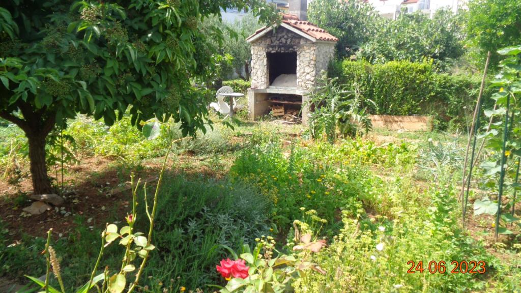 Obiteljska kuća u blizini osnovne škole. Apartman je prostran, 55 m2, ima balkon. Može se sjediti u vrtu, koristiti gril. Blizina plaže 10min hoda, 5min hoda do centra. Parking u dvorištu. Sok, kolač i smokve za dobrodošlicu.