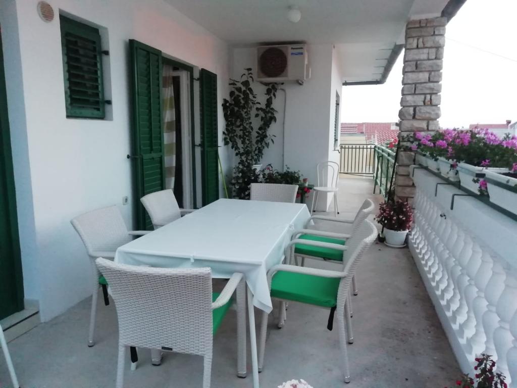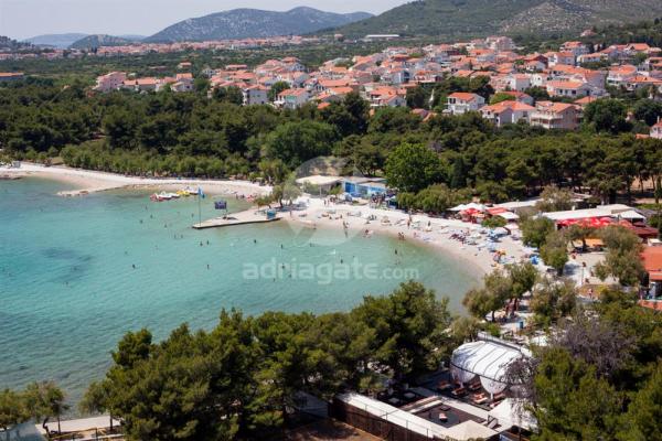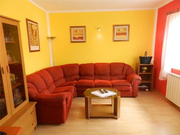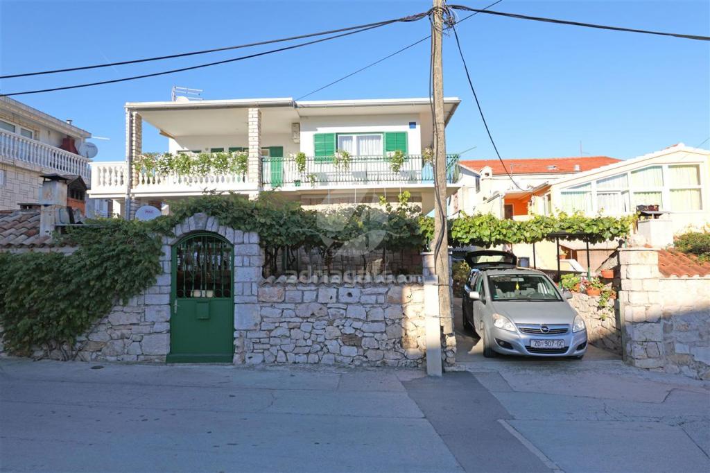 Komforno i suvremeno opremljen apartman površine 110 m2, idealan za jednu veću ili dvije manje obitelji, koje žele zajedno ljetovati. Smješten je u centru Vodica, na prvom katu obiteljske kuće. Sastoji se od tri spavaće sobe sa po dva bračna kreveta, u jednoj je i pomoćni ležaj, dvije kupaone (jedna sa tuš kadom a druga sa ležećom kadom), hodnika, prostrane kuhinje sa blagovaonicom, dnevne sobe i velike i lijepe terase. Do centra Vodica laganim hodom stignete za nekoliko minuta. Također ima i osiguran parking za dva automobila i moguću upotrebu roštilja u dvorištu. Napomena: upotreba klime nije uračunata u cijenu apartmana i u periodu od 16. 07. -20. 8. poželjna smjene subotom.