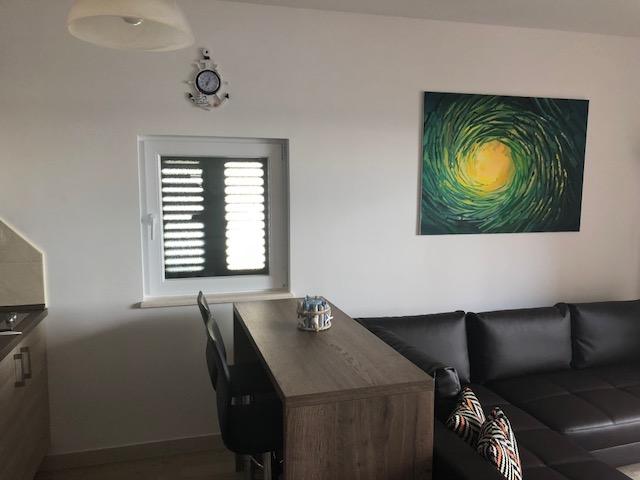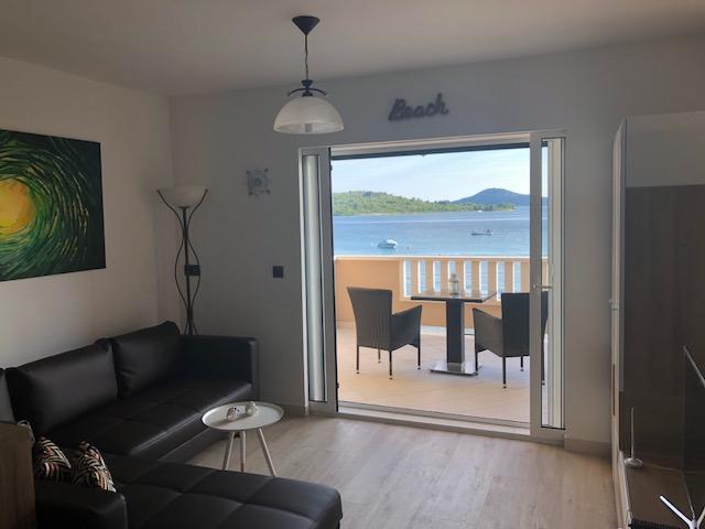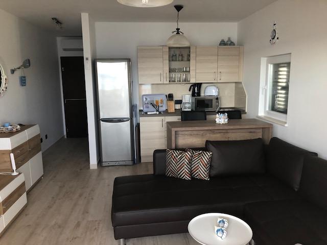Studio apartman, sa kuhinom i kupaonicom. Lezaj na razvlacenje za dve osobe, velikom terasom. Na katu, neposredno uz plazu.
