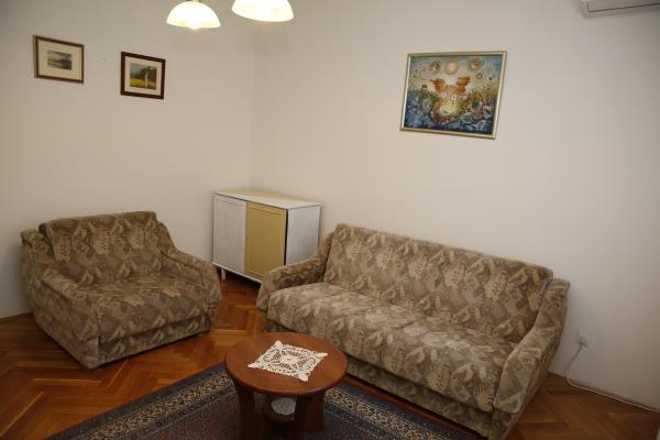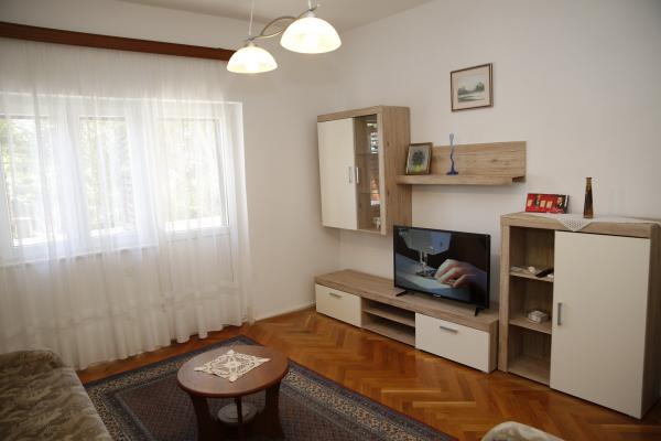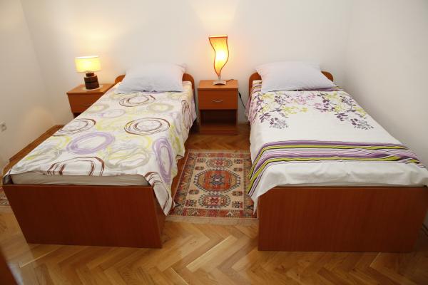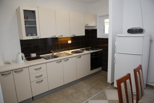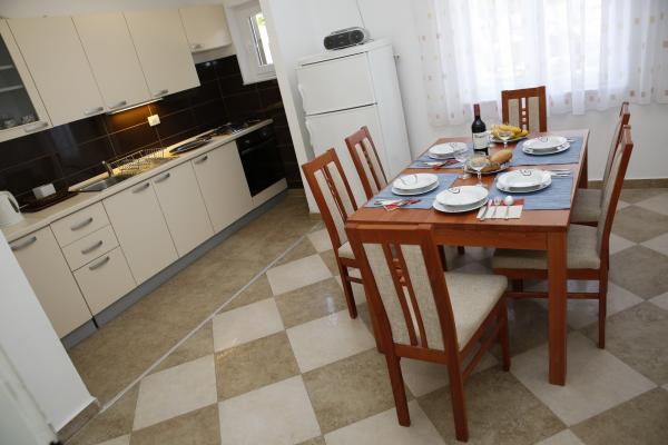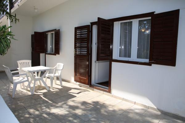 Apartman se nalazi u najmirnijem dijelu mjesta. Udaljen je 5 miuta hoda do plaze i 10 minuta hoda do samog centra mjesta. Apartman je zaista prostran i odličnog rasporeda prostorija. Sastoji se od sobe sa bračnim krevetom, sobe sa dva odvojena kreveta, kuhinje sa blagavaonicom, dnevne sobe sa kaučem na razvlačenje, kupaonice, velikom terasom i vrtom okrenutim na južnu stranu. Apartman je vrlo ugodan, nedavno je renoviran i lijepo uređen.