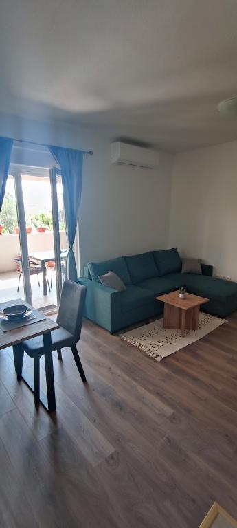 Suvremeno opremljeni apartman u mirnom predjelu, udaljen oko 900m od mora sa osiguranim privatnim parkingom, sa pogledom na lijepo uređeni vrt. Apartman se nalazi u prizemlju obiteljske kuće.
