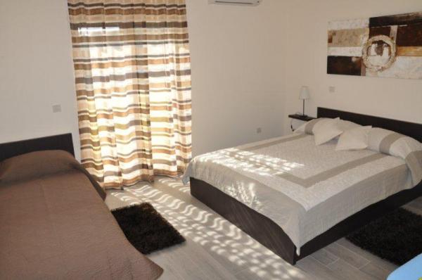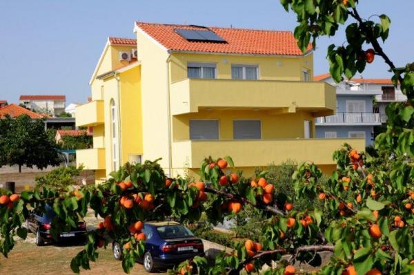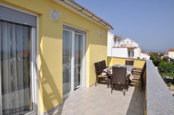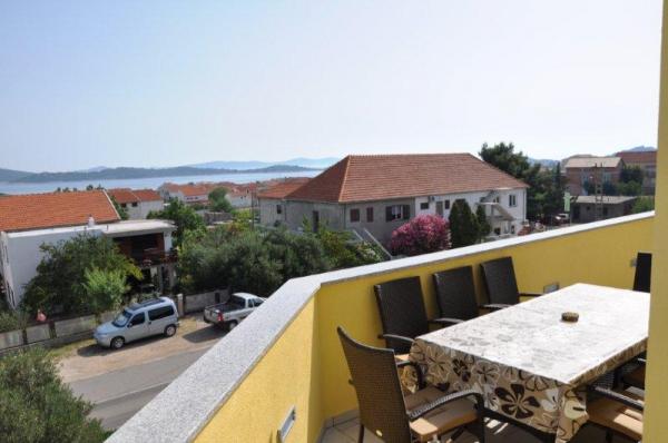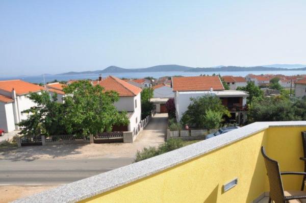Luksuzno opremljen ( novogradnja 2012.g. ) apartman u mirnom predjelu Vodica nalazi se 400 m od poznate Plave plaže i 400m od centra Vodica ( 5-7 minuta hoda ). Apartman se nalazi na drugom katu kuće i površine je 130m2 i ima pogled na more i otoke. Ima tri spavaće sobe, dnevni boravak, kuhinju i dva kupatila. Sve spavaće sobe, dnevni boravak i kuhinja imaju klima uređaj. Apartman ima tri balkona i svi imaju pogled na more. Apartman je opremljen sa LCD TV, SAT TV ,DVD, internet, perilica rublja, perilica za suđe, mikrovalna, aparat za kavu, kuhalo za vodu, toster, mikser,dječji krevetić, pegla i stol za peglanje, fen, sef...
