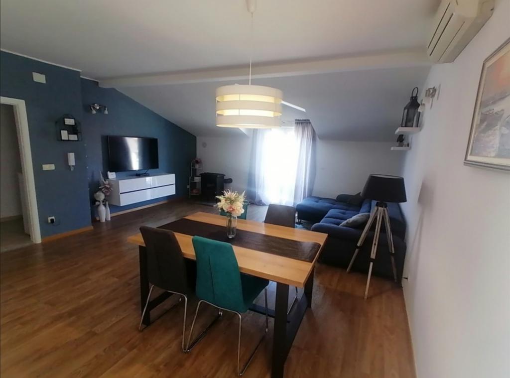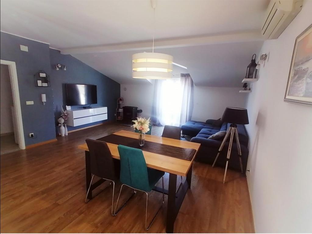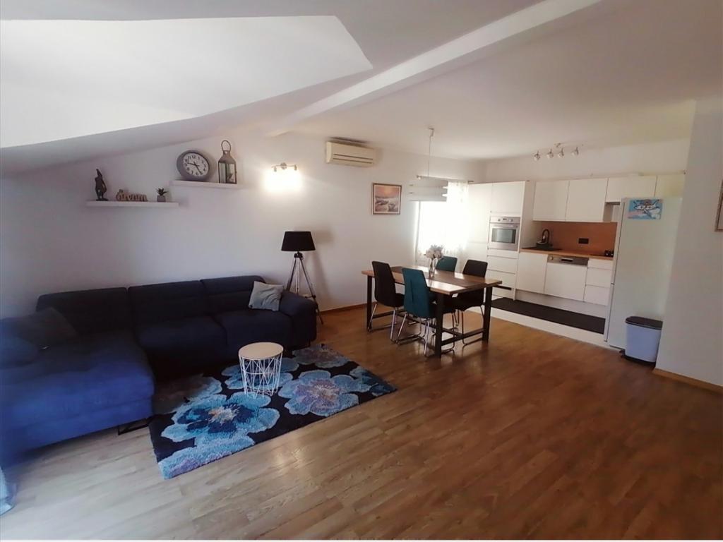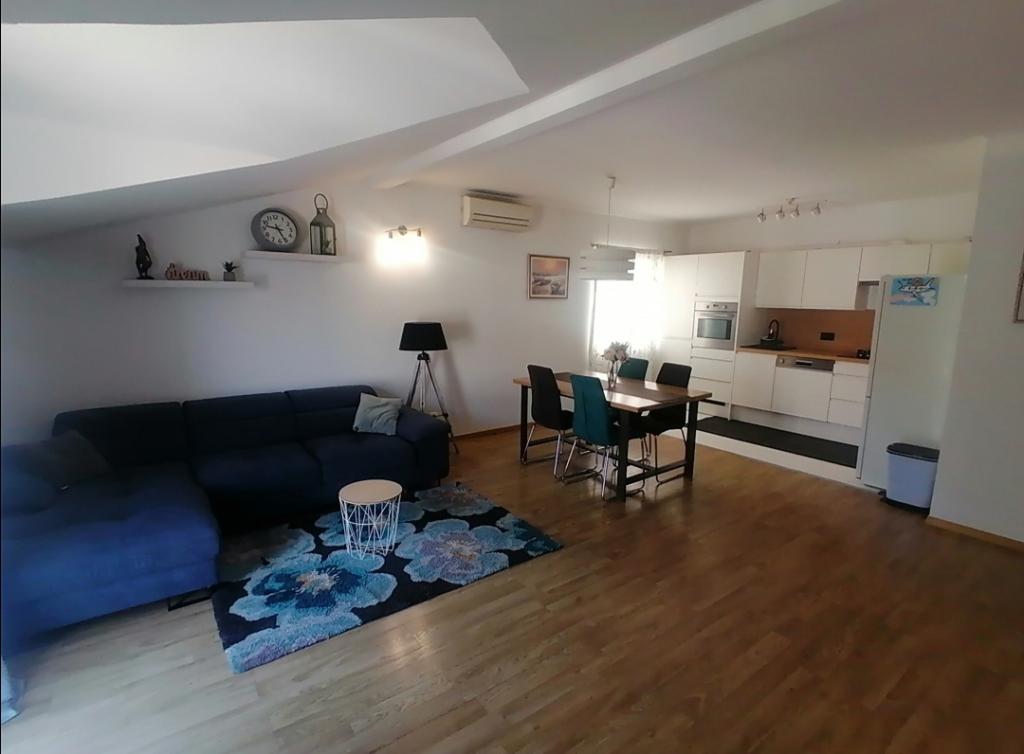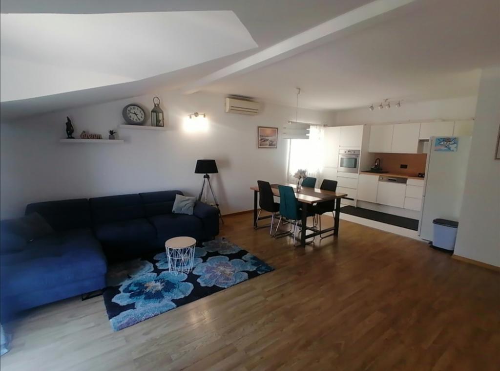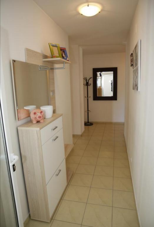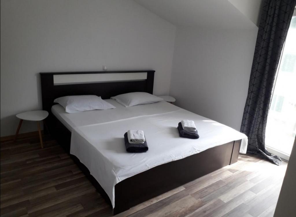 Novi moderan apartman A4 sa dvije spavace sobe bračnim krevetima 180x200 dvije kupaonice te prostran dnevni boravak te moderna kuhinja sa svim aparatima. Dvije su terase. Roštilj za korištenje. Apartman se nalazi od centra 5 min hoda a 10 min od plaže. Nalazi se u mirnoj ulici.