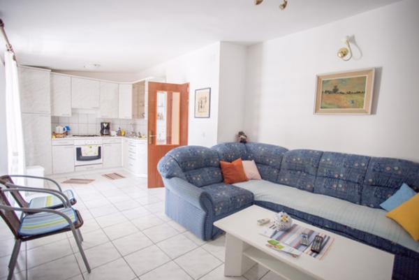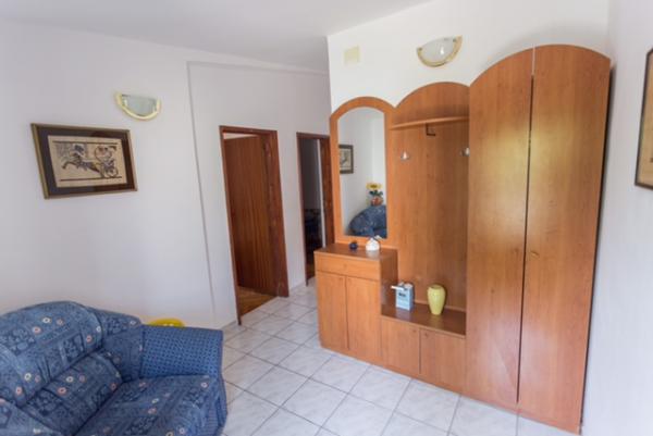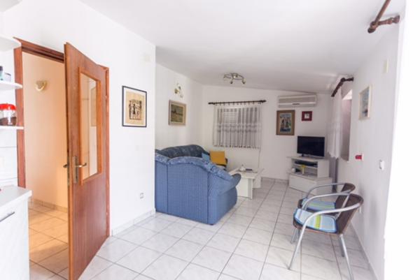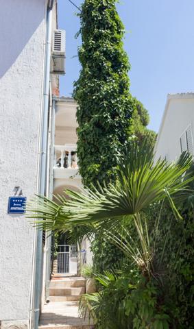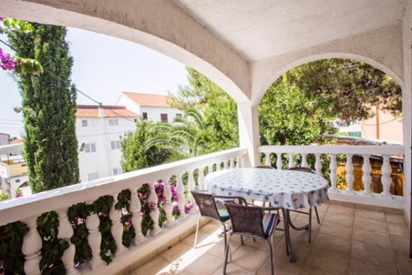 Kompletno opremljen, moderan, komforan apartman s 4 zvjezdice, na 1. katu vile s ukupno 2 apartmana. Sastoji se od dnevnog boravka (s ležajem na razvlačenje) s kuhinjom i izlazom na prostranu terasu, 2 spavaće sobe s bračnim krevetima koje izlaze na balkon, 2 kupaone i hodnika. Opremljen je s 2 klime, svim kućanskim aparatima, i SAT-TV-om, a brzi Wi-Fi uključen je u cijenu. Besplatan parking u slijepoj ulici ispred vile. Osim što pruža komfor na 85m2 s dvije kupaone, prednost apartmana je i lokacija koja je mirna a istovremeno blizu svih sadržaja: supermarketa, plaže, centra, restorana, kafića, sportskih sadržaja, pošte, doma zdravlja, autobusnog kolodvora...Uz sve sadržaje u samim Vodicama, kratke vožnje udaljene su i dvije zračne luke, gradovi Zadar i Šibenik, te mnoge turističke i prirodne atrakcije: dva nacionalna parka-Krka i Kornati, zabavno-vodeni park u Biogradu na Moru, hotelski kompleks Solaris...
