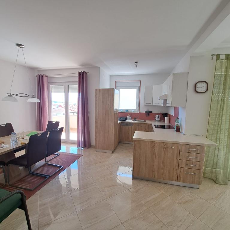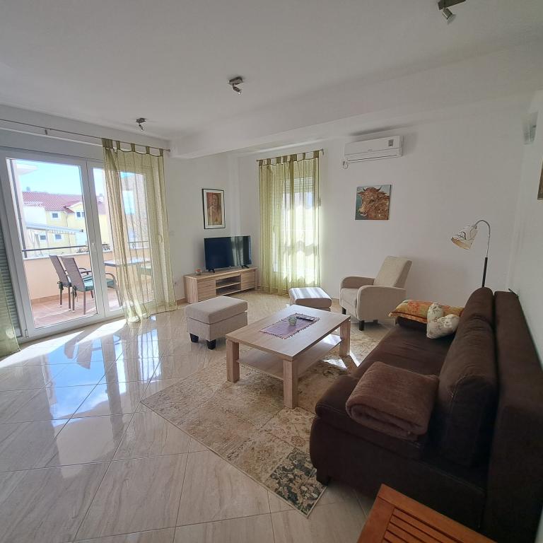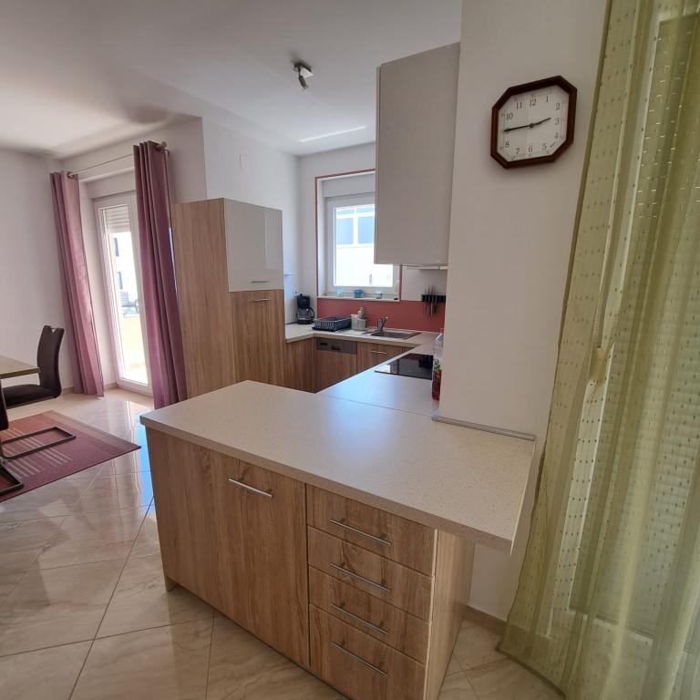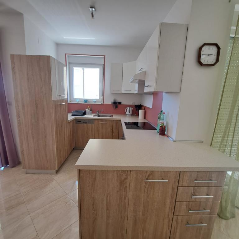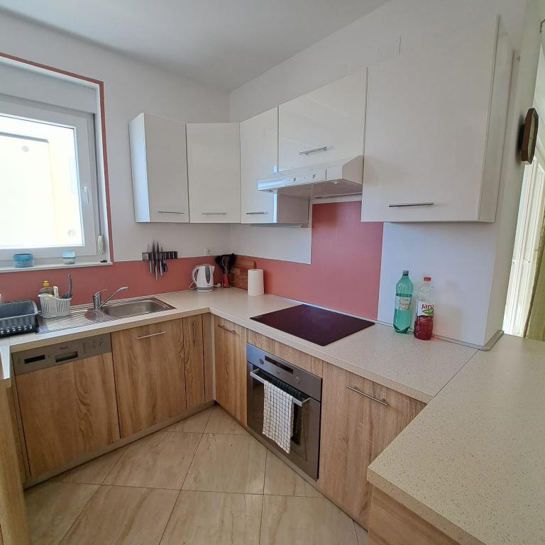 Kompletno i suvremeno opremljen apartman u mirnom predjelu Vodica, smješten 400 m od mora i Plave plaže, te 15 minuta hoda do centra mjesta Vodica. Na plaži se nalazi najveći Aqua Park na Jadranu namijenjen za djecu i odrasle. Nudimo kvalitetan smještaj u novom, potpuno opremljenom i uređenom apartmanu koji se sastoji od dvije spavaće sobe, kupaonice s tuš kabinom, dodatni wc, kuhinja s blagovaonicom, veliki dnevni boravak s garniturom koja se pretvara u ležaj za dvije osobe, dvije terase, uređena okućnica koja pripada apartmanu s mediteranskim biljkama, LCD TV/SAT prijemnik, klima uređaj (svaka soba posebno), besplatni WiFi internet, pripadajući parking. Apartman se nalazi u prizemlju zgrade,te je takav primjeren za osobe sa invaliditetom. Ukoliko tražite udoban smještaj i miran san, a istovremeno želite uživati u bogatom kulturnom i noćnom životu Vodica, Tribunja i Šibenika, rezervirajte smještaj u našem apartmanu. Radujemo se vašem dolasku.