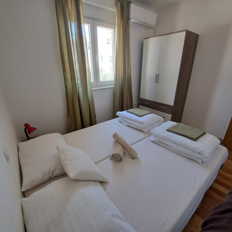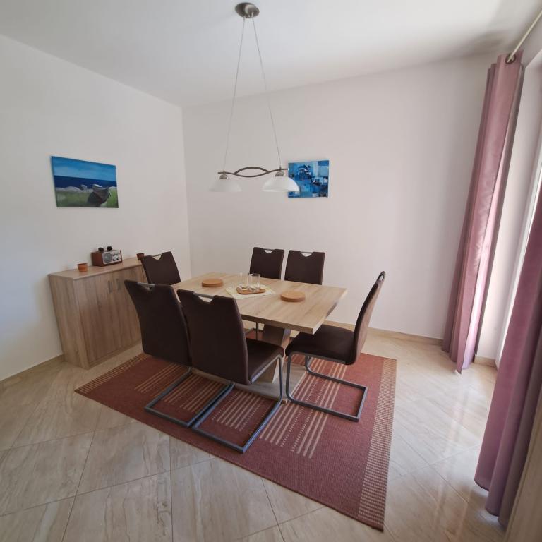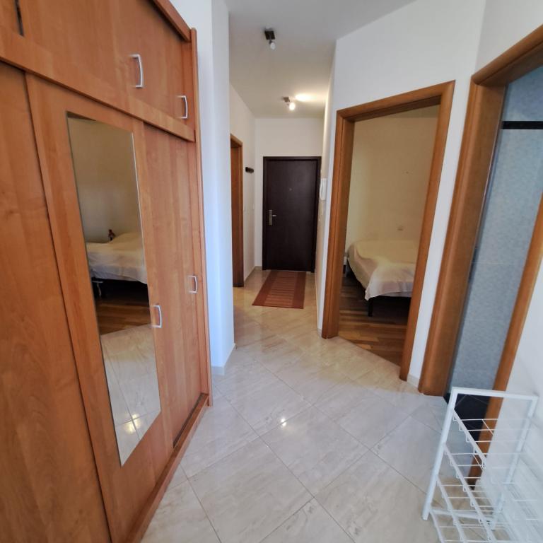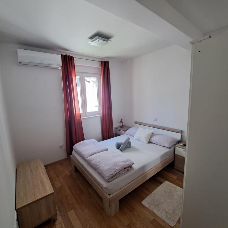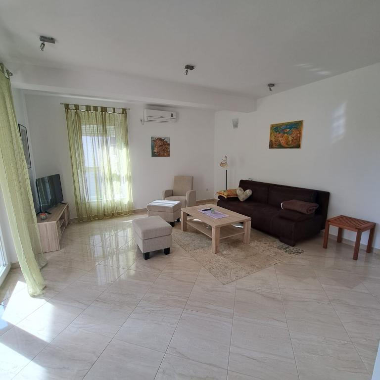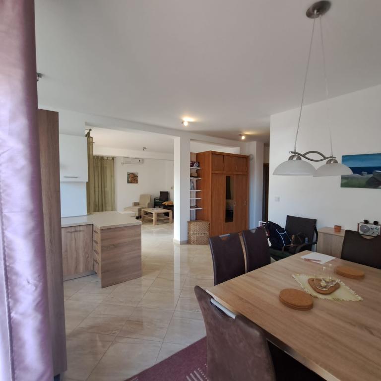 Kompletno i suvremeno opremljen apartman u mirnom predjelu Vodica, smješten 400 m od mora i Plave plaže, te 15 minuta hoda do centra mjesta Vodica. Na plaži se nalazi najveći Aqua Park na Jadranu namijenjen za djecu i odrasle. Nudimo kvalitetan smještaj u novom, potpuno opremljenom i uređenom apartmanu koji se sastoji od dvije spavaće sobe, kupaonice s tuš kabinom, dodatni wc, kuhinja s blagovaonicom, veliki dnevni boravak s garniturom koja se pretvara u ležaj za dvije osobe, dvije terase, uređena okućnica koja pripada apartmanu s mediteranskim biljkama, LCD TV/SAT prijemnik, klima uređaj (svaka soba posebno), besplatni WiFi internet, pripadajući parking. Apartman se nalazi u prizemlju zgrade,te je takav primjeren za osobe sa invaliditetom. Ukoliko tražite udoban smještaj i miran san, a istovremeno želite uživati u bogatom kulturnom i noćnom životu Vodica, Tribunja i Šibenika, rezervirajte smještaj u našem apartmanu. Radujemo se vašem dolasku.