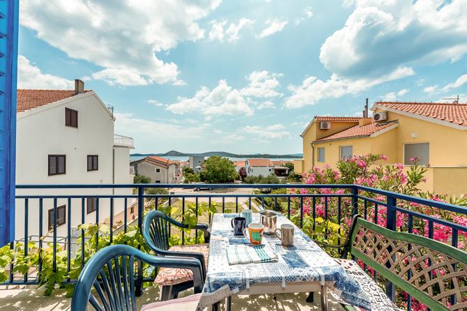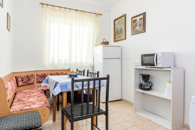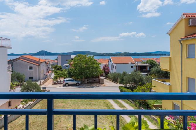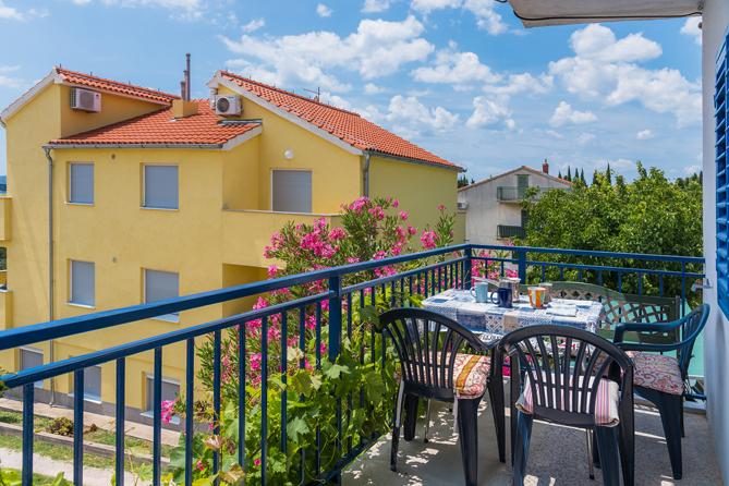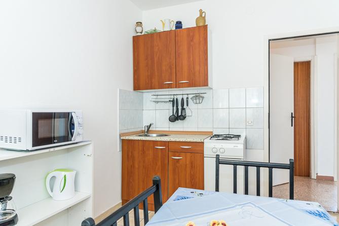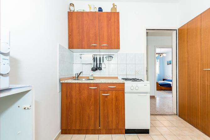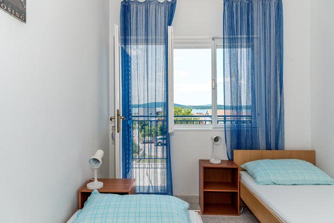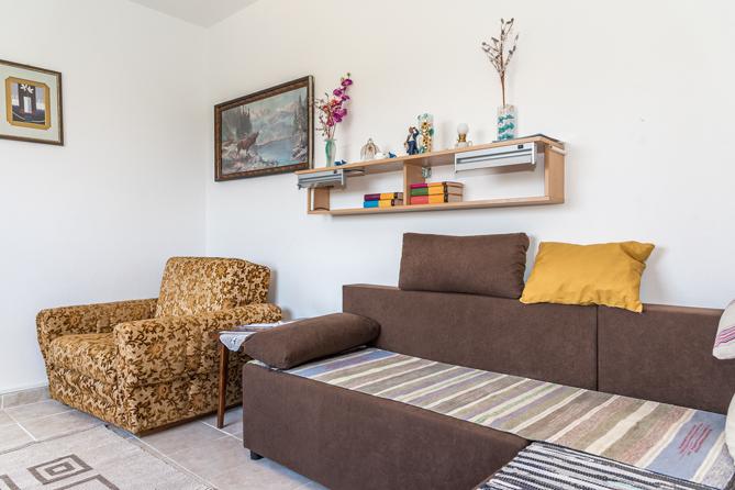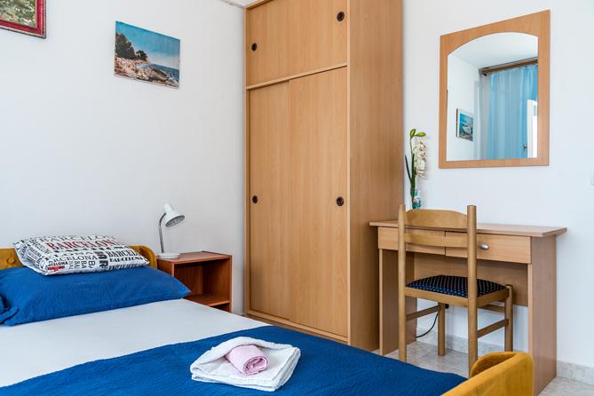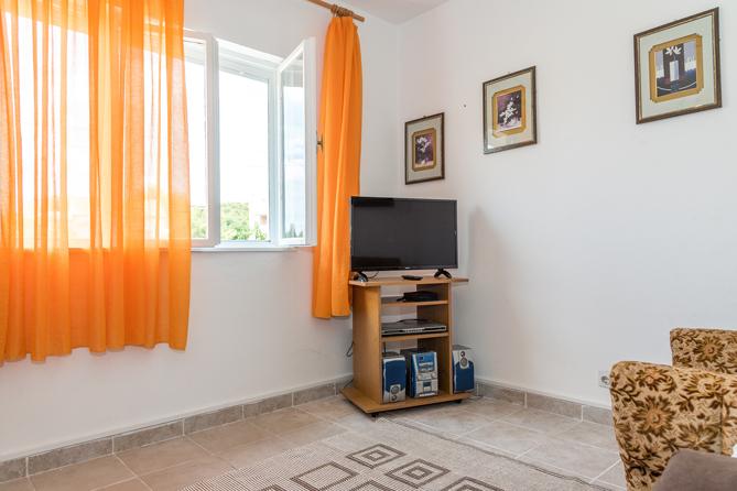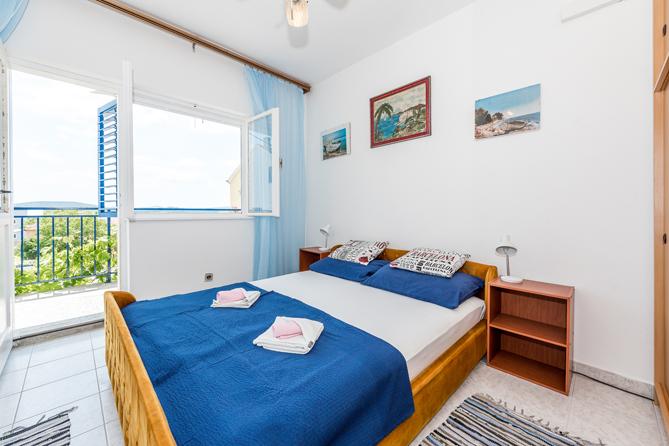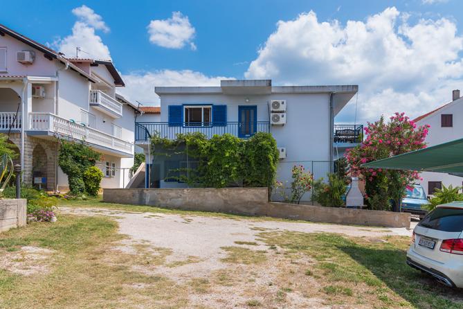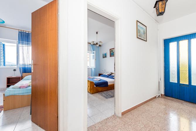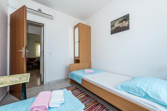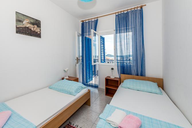 Kompletno opremljen apartman koji se sastoji od dvije odvojene spavaće sobe, jedna sa bračnim krevetom druga sa dva odvojena kreveta, obje sobe imaju vlastite klima uređaje. Kupatila s Wc-om , dnevne sobe sa TV , kuhinje s kombiniranim novim hladnjakom. Terase s pogledom na more. Apartman se nalazi na 1 katu obiteljske kuće. Parking je osiguran.