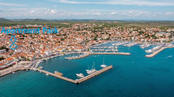 Apartman za najam - kuća za odmor (150 m2) u centru Vodica, 200 m od mora. Apartman zauzima čitavu kuću, a nalazi se na mirnoj lokaciji u samom centru Vodica, u neposrednoj blizini najstarijeg parka po kojem je apartman i dobio ime. Centralni park se danas ne razlikuje od ostalih parkova, no njegova priča seže daleko u prošlost Vodica, prije nego što su Vodice izrasle i jedno od najpoželjnijih turističkih destinacija za godišnji odmor u Dalmaciji. Apartman se nalazi na samo 3 minute hoda od mora (100 m), a u neposrednoj blizini nalazi se dućan, pekarna i restoran, što vam osigurava maksimalnu opuštenost i uživanje u Vašem godišnjem odmoru. Apartman je veličine 150m2, u potpunosti je opremljen a sastoji se od: - PRIZEMLJE: Dnevni boravak, blagovaona, kuhinja, kupaonica, ostava za stvari - PRVI KAT: - Soba A: 2 kreveta (14 m2) - Soba B: 2 kreveta (14 m2) - Kupaonica - DRUGI KAT: - Soba C: 4 kreveta (22 m2) - Terasa