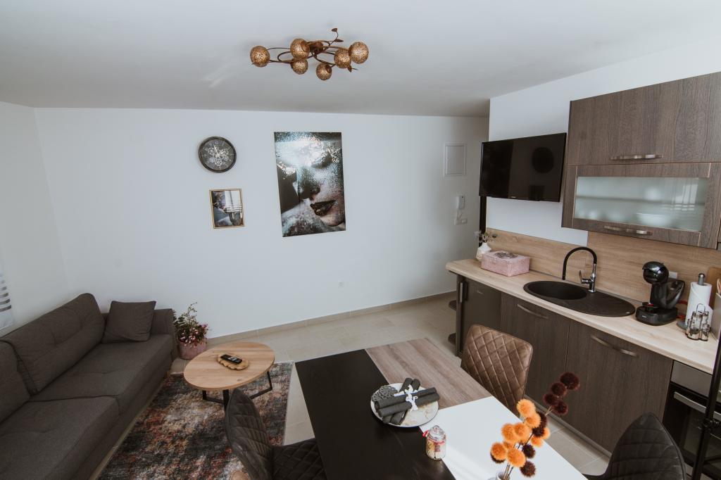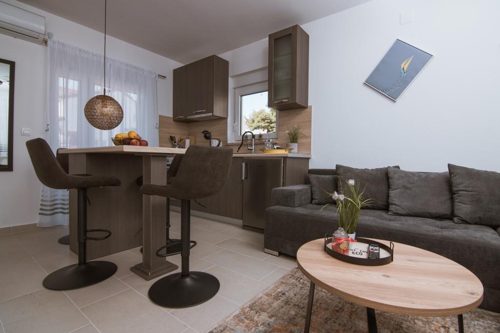 Visoki standard objekta. Sve novo. Čistoća na najvišoj razini. Svakodnevna briga domaćina za njegovo održavanje. Kuhinjski pribor (novi lonci, tava, tanjuri, perilica suđa, pećnica, sve potrebno), kupaonica (perilica rublja, sušilica, glačalo u kupaonici). Udobni kreveti. Učinkovit wifi s mogućnošću uključivanja YouTubea. Učinkovita klimatizacija, rolete s automatskim upravljanjem.U ovoj sam se kući osjećala kao kod kuće, imala sam sve što mi treba. Prekrasan pogled na more sa terase apartmana. Domaćin je bio podrška. Imali smo mali kvar u stanu, odmah je reagirao, pomogao. Najveća prednost ovog mjesta su ljudi koji ga vode. Dakle domaćin i njegova supruga. Njihovo gostoprimstvo bilo je nevjerojatno. Nikada neću zaboraviti ukusnu kavu na koju smo više puta bili pozvani. Prije mog dolaska, imao sam vrlo dobar kontakt e-poštom s vlasnikom. Prihvatio nas je (s nama je bilo 2 male djece) puno ranije prije 10 sati na moj zahtjev. Ohlađeno vino i voda čekali su u hladnjaku po dolasku. Hvala vam opet! Bio je to najbolji odmor ikada! Ako se vratimo u Hrvatsku, 100% ćemo otići u Piip-ni-More