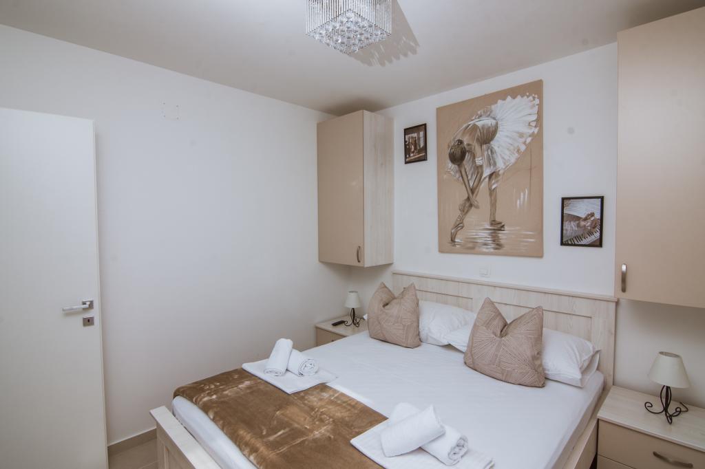 Apartman PiiP-ni-More u Vodicama, kapaciteta je 2+2, cca 55 m2 smješten u novoizgrađenoj zgradi u maloj mirnoj ulici.Apartman sadrži kupaonu, prostrani dnevni boravak s blagovaonicom i potupuno opremljenu kuhinju s raznim priborom za kuhanje, uključujući perilicu posuđa,Perilicu rublja, pećnicu, indukcijsku ploču,hladnjak, aparat za kavu, kuhalo za vodu, toster... Apartman ima lijepu intimni balkon djelomično s pogledom na more kao i mogućnost korištenja krovne terase. Tu je i prostrana spavaća soba sa zasebnim TV uređajem. More i glavna gradska plaža udaljeni su cca 600 metara, a centar grada lako je dostupno šetnjom od desetak minuta. Tržnica, restorani,trgovine, autobusni kolodvor, udaljeni su petnaestak minuta laganog hoda.