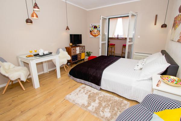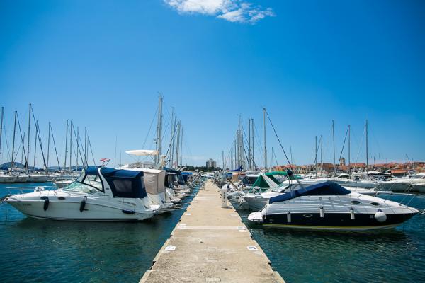 Novouređen i Vrhunski opremljen studio apartman, smješten prvi red do mora, preko puta nautičke marine što ga čini idealnim izborom za goste ili vlasnike plovila. Apartman je okruzen restoranima, kafićima, koktel barovima. Preko puta nalazi se tržnica, banka, posta, striptiz klub, disco klubovi, automat klub. pozicija terase ima pogled na more, točnije plovila u spomenutoj marini, opremljena je sankom i udobnim barskim stolicama koje omogucavaju nesmetano uživanje.