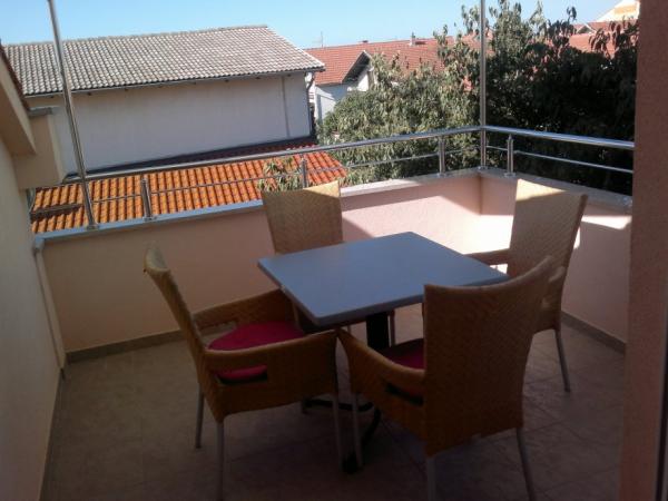 Apartman 4 zvjezdice! Za ljetovanje u mirnom dijelu grada Vodica (u blizini hotela Olympije) nalazi se, na katu obiteljske kuće, novi i moderno opremljen apartman od 45 m2. Apartman se sastoji od spavaće sobe s bračnim krevetom, kupaonice te potpuno opremljene kuhinje s blagovaonicom i dnevnim boravkom. U dnevnom boravku postoji mogućnost razvlačenja kutne garniture u 2 pomoćna ležaja. Blagavaonica ima izlaz na opremljenu terasu.