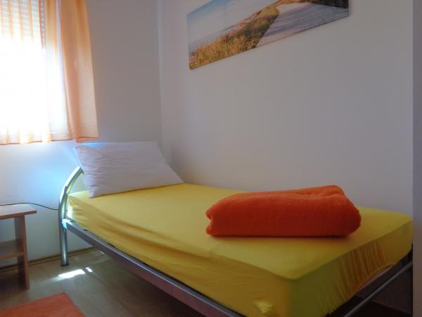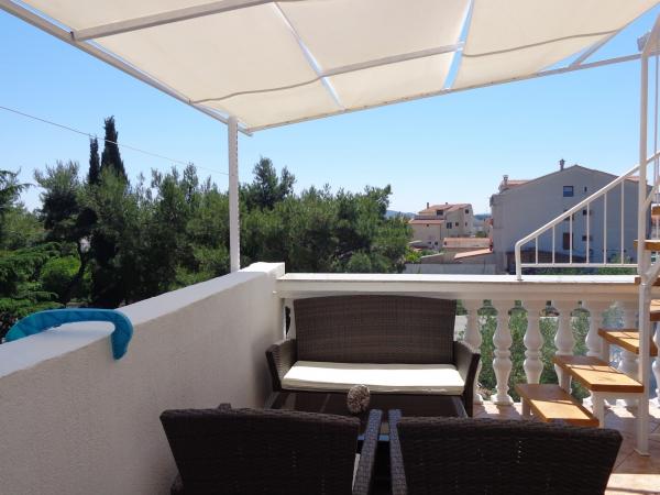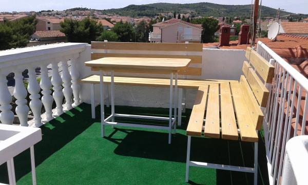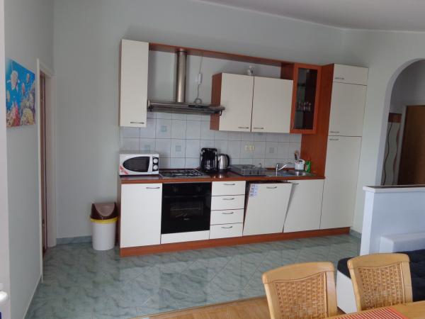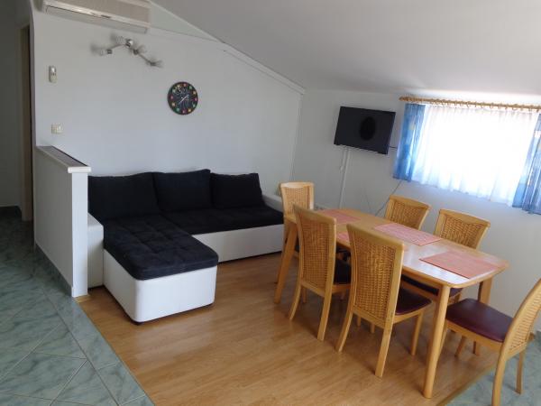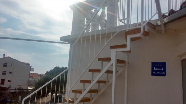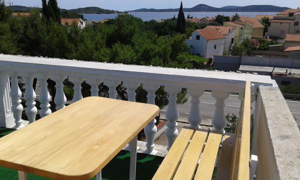 Naš apartman se nalazi na drugom katu Ville Marije. Kompletno je i suvremeno namješten, a sastoji se od dvije spavaće sobe, potpuno opremljene kuhinje sa blagovaonom, klimatiziran sa dva klima uređaja. Ima dvije terase, a sa gornje terase vidikovca na vrhu zgrade pruža se prekrasan pogled na cijeli zaljev i otoke. Udaljen je 10 min. ili 400 m od uređene plaže sa plavom zastavom, 15 minuta hoda do centra grada, što možete vidjeti po poziciji na karti. 10 km vožnje ima do prekrasnog grada Šibenika, 60 km do Zadra - najbolje turističke destinacije za 2016 godinu. Udaljenost 15 km do nacionalnog parka Krka. Želimo Vam ugodan boravak u našem apartmanu i na prekrasnoj Dalmatinskoj obali. Andrija i Katarina Bernik