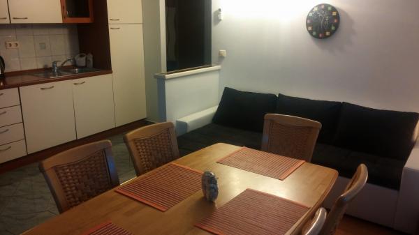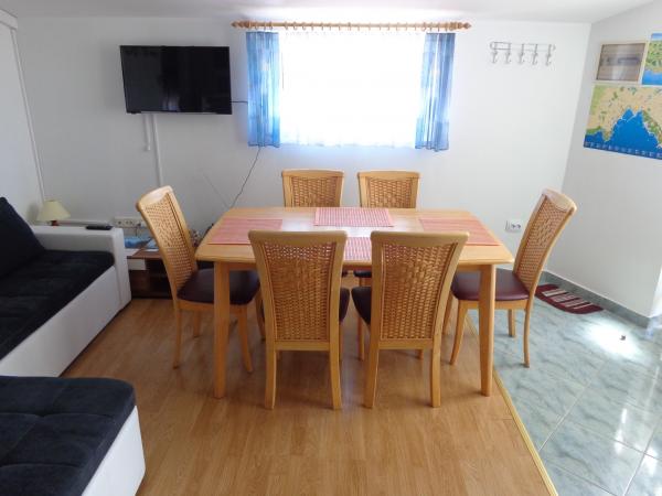 Pročitaj više Smještajne jediniceRezervacija apartmana vrši se uz uplatu pologa u iznosu 50-100 € ovisno o broju noćenjana naš račun. Završno čišćenje apartmana 40 €. Vrijeme dolaska 14:00 sati. Vrijeme odlaska 10:00 sati