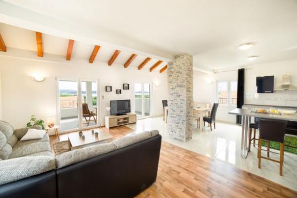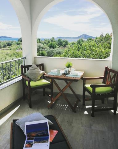 Predivani apartmani na periferiji Vodica, s pogledoma na more i obližnje otoke. Mali apartman Arta namenjen za (2 -4 osobe), nalazi se na prvom katu, ima svoju zasebnu terasu. Drugi veći i prostraniji apartman Koli ( 4 -8 osoba), nalazi se na drugom katu, predivna terasa s pogledoma na more i otoke. Zaseban ulaz. Osiguran parking. U dvorištu postavljena vrtna granitura i mogućnost korištenja grila. Udaljenost do plaže je 200 m, a do centra grada 20 minuta hoda.