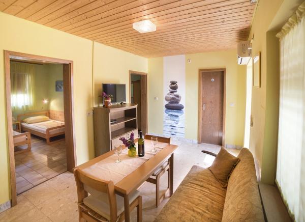 Turistička pristojba je uključena u cijenu. Šaljemo pismenu potvrdu rezervacije (voucher)Čist i uredan apartman. Opet bi odabrali ovaj smještaj. Domaćini susretljivi i divni ljudi. U blizini apartmana trgovina koja ima sve sto vam zatreba. Na plaži ste za maks.10min pješice od apartmana.