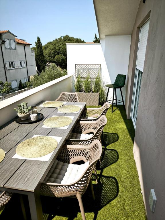Kompletno sređen apartmani, koji se nalaze u mirnom predjelu Vodica, smješteni uz drugi red od mora. Objekt se nalazi 3 minuta hoda do glavne plaže, i 10 minuta do centra.... Prednost naših apartmana je ta što je sve u blizini kuće, tako da automobil ne trebate koristiti... Apartmani imaju predivnu veliku terasu, s koje se vidi more, otoci i centar... Može se iznajmiti cijeli kat za 9 osoba, idealno za veliku obitelj....