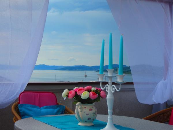 Turistička pristojba je uključena u cijenu.Ostali smo u apartmanu A2 + 2 u srpnju 2017. Mi smo bili jako zadovoljni - a sve u skladu sa slikama i opisima, čist, lijep i ugodan. To je sve što je potrebno za pripremu obroka, čišćenje, itd .. posteljina i ručnici se mijenjaju na zahtjev ili kada je potrebno da se jednom tjedno. Terasa - prekrasno mjesto, prekrasan pogled. Zatvoreno zgrada, u prizemlju možete napustiti svoj kolica, madrace, itd Dakle, ne morate ponijeti uza stube. Vlasnici ili staratelja oduševiti, korisne mlade ljude. Jednostavno se događa. Nije bilo ni problem u večernjim satima, kada smo se dogovorili roštilj na terasi s prijateljima koji su živjeli u nekom drugom stanu koji je čest problem. Iz minusa - plaža je malo dalje nego u opisu. Za obitelji s malom djecom može biti problematično. I za vlasnike - krevet u dnevnoj sobi treba biti zamijenjena :) Mi sigurno će izabrati ovaj stan opet. Mi visoko preporučiti to.