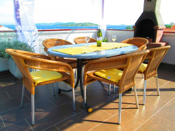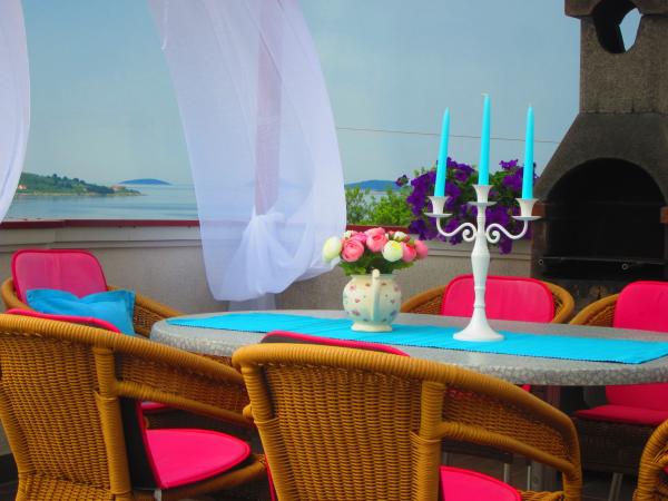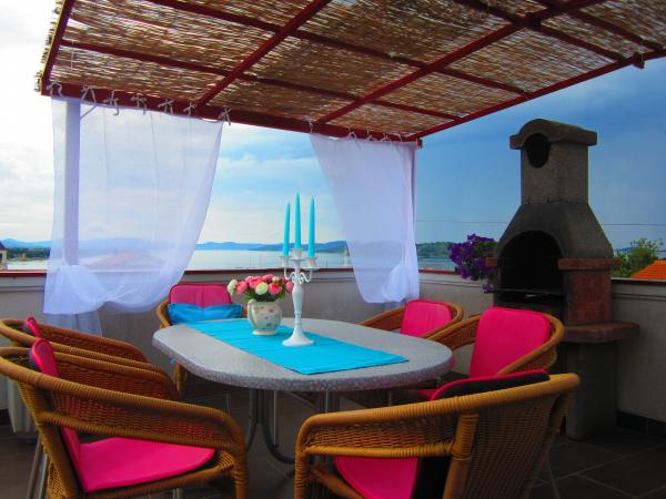 apartman je u samom centru Vodica. Plaža svega nekoliko minuta udaljena Izrazito čisti sa ugodnim vasnicima koji su uvijek na raspolaganju i spremni pomoći. apartman ima posebnu terasu kao i mogućnost korištenja prekrasne glavne terase s koje se proteže pogled na more i čitave Vodice. ugodno iznenađenje je bio i besplatan parking u blizini kuće, kao i korištenje roštilja. Svakako se vidimo i sljedeće godine
