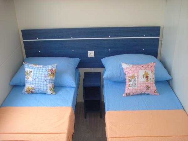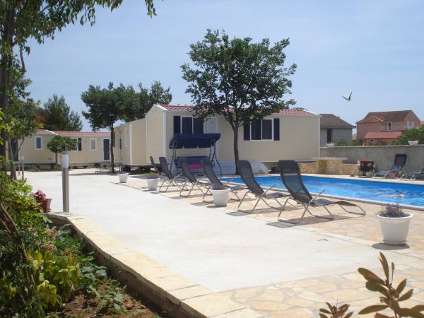Novoizgrađen kompleks od 8 mobilnih kućica Shelbox (svaka površine 24m2, dvije sobe, jedna sa bračnim krevetom i jedna sa dva kreveta razdvojena, SAT-tv, klima, kuhinja i WC). Lokacija je idealna za odmor u tišini jer nismo blizu glavne ceste, također idealno za obitelji sa djecom jer nema prometa i ima dosta slobodnog prostora. Udaljenost od mora je 300m (3-5min hoda), a ove godine je plaža preuređena i označena plavom zastavom (interaktivni pregled: http://www.infovodice.com/pano/srima/Srima.html). Za svaku mobilnu kućicu osigurano je parkirno mjesto. Za boravak kraći od 3 dana naplaćuje se 20% veća cijena. Boravišna pristojba se naplaćuje posebno, 1€ po osobi, a za mlađe od 18 godina 0.50€.
