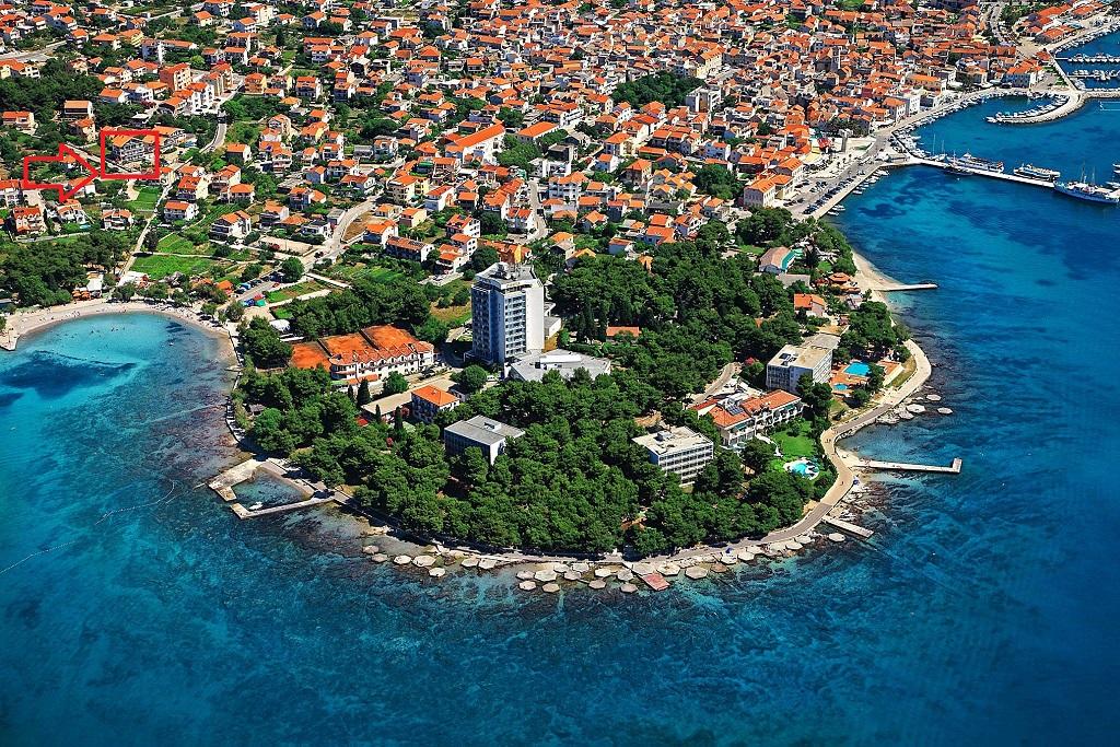 Apartmani i sobe Božena nalaze se u mirnom dijelu Vodica u blizini glavne plaže (100 m) i blizu centra (300).