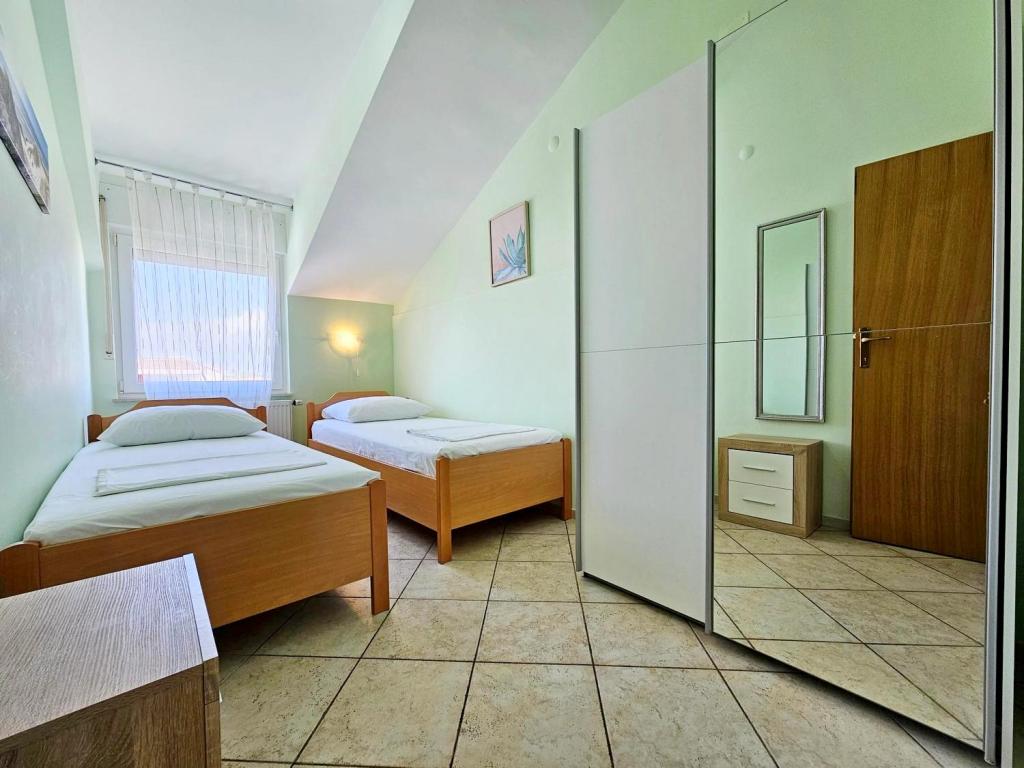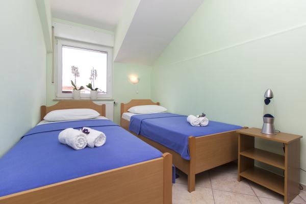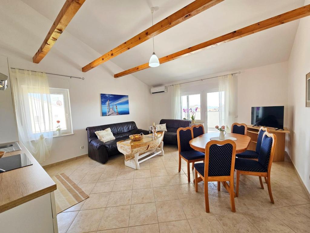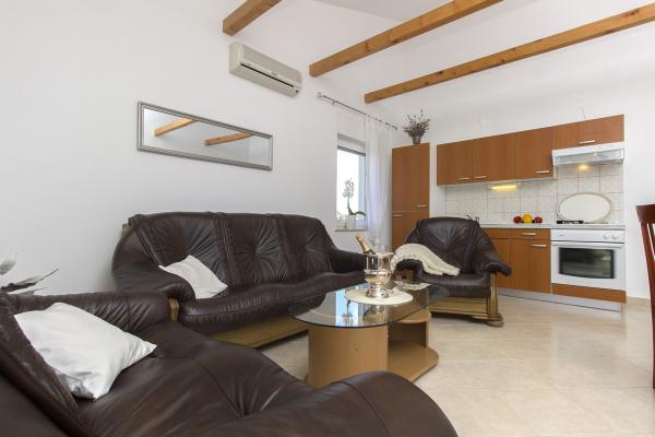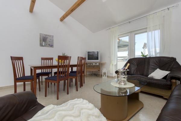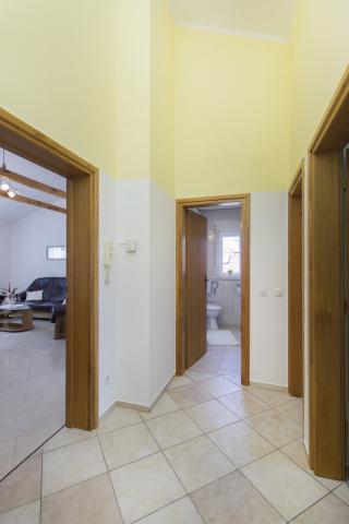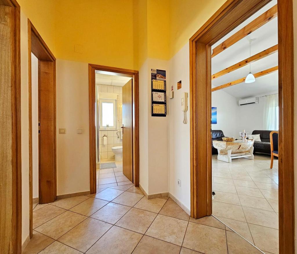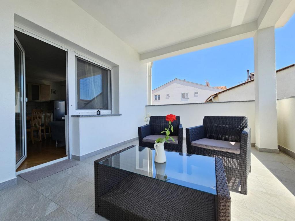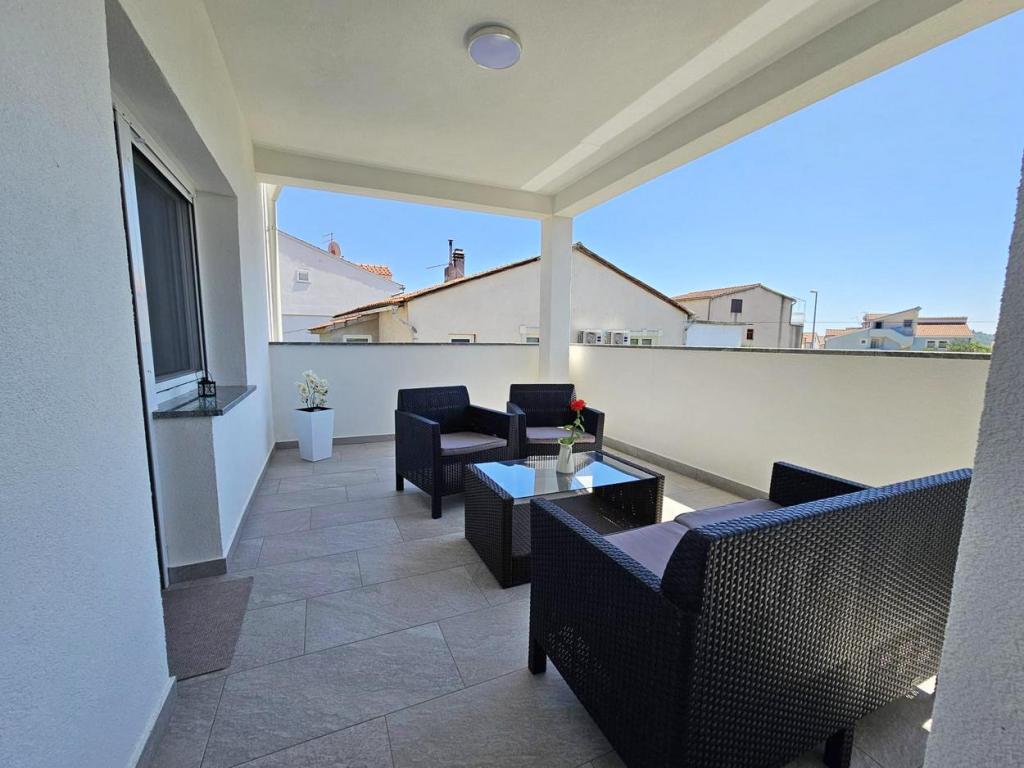 NOVO!!! Dobro nam došli dragi naši gosti u novouređene prostrane apartmane od 70m2 u obiteljskoj kući: veliki dnevni boravak povezan sa kuhinjom i blagovaonom te izlaz na veliku terasu od 16m2 s pogledom na more; spavaća soba sa bračnim krevetom i dodatnim balkonom, druga spavaća soba sa 2 odvojena kreveta, velika kupaona i hodnik. Na istoj etazi 2 potpuno ista apartmana sa novo izradjenim velikim terasama! Objekt se nalazi 3min od plaže i prve trgovine. Udobno i prostrano! Čisto i uredno! U sklopu objekta nalazi se sigurno i natkriveno parkirno mjesto. WiFi, klima, Tv satelit, roštilj, vanjski tuš, siguran parking i boravišna taksa uključeni u cijenu! Za sve dodatne potrebe ljubazni domaćini stoje Vam u svakom trenutku na raspolaganju!