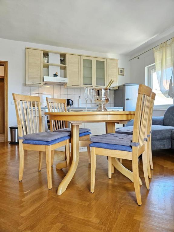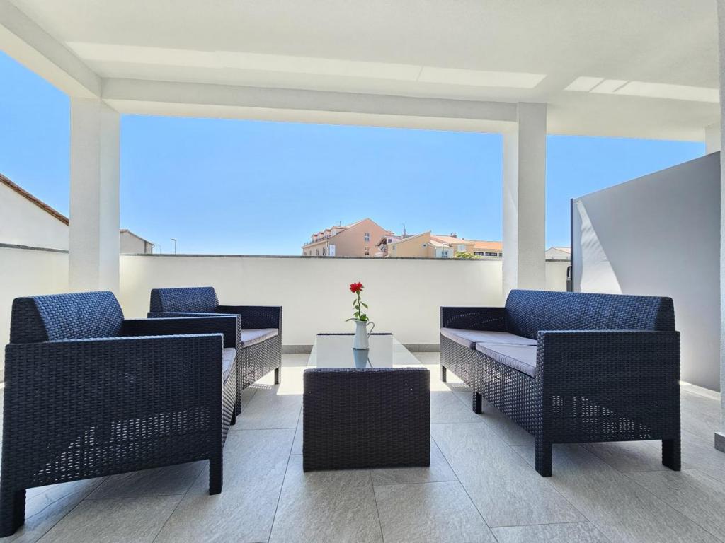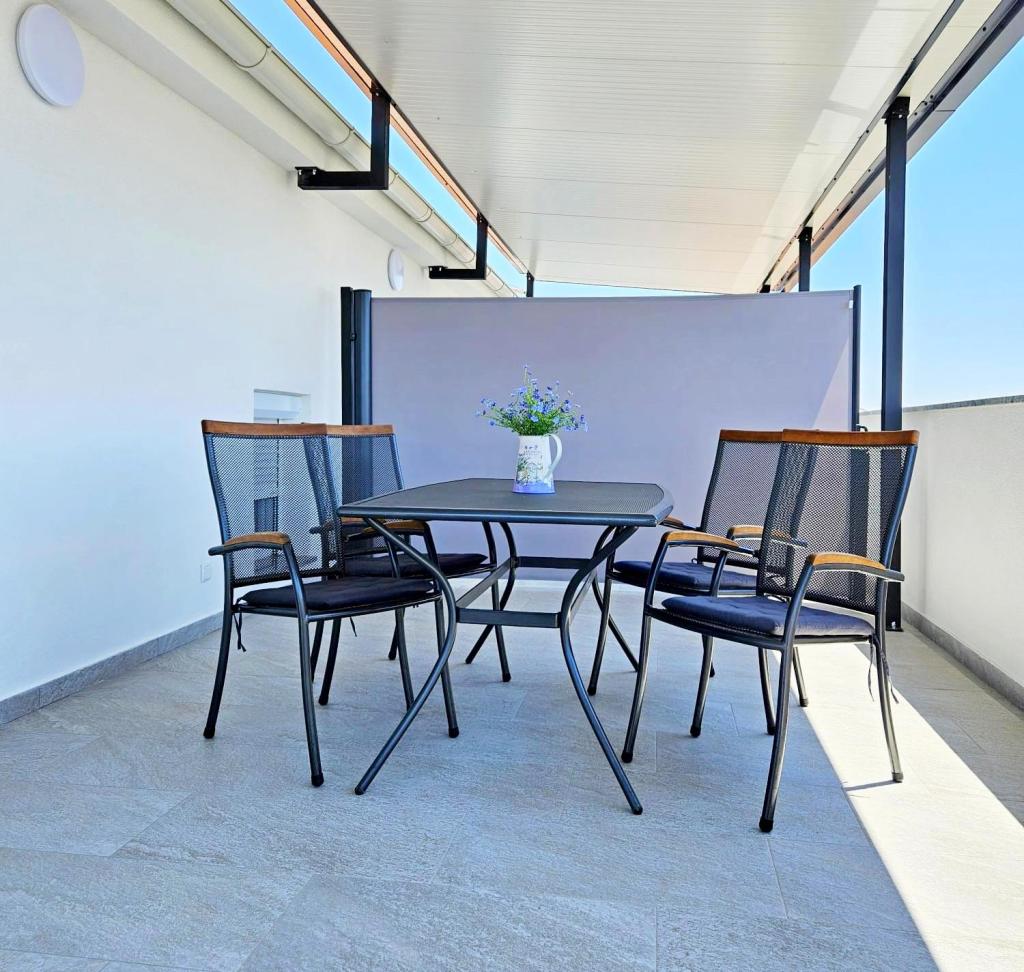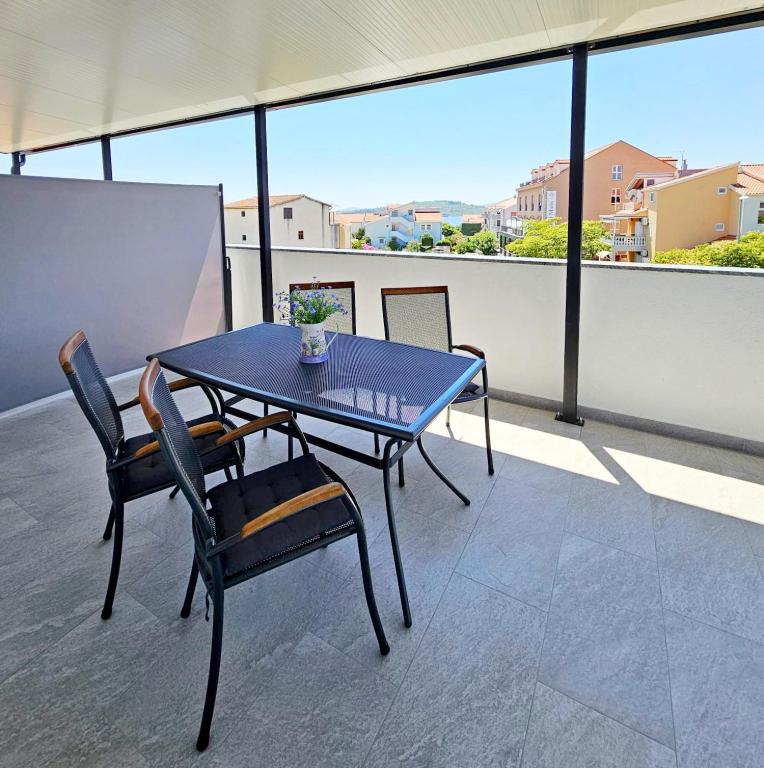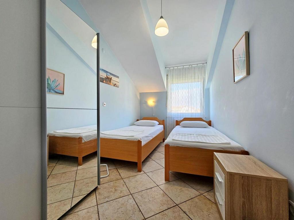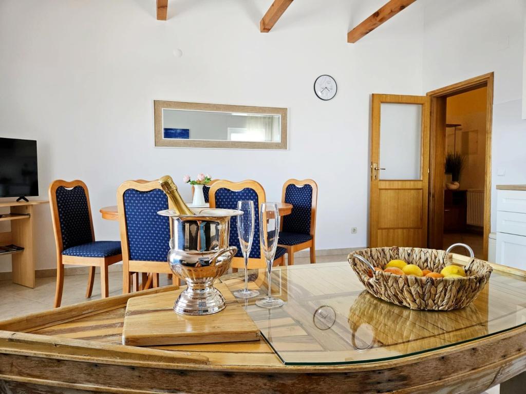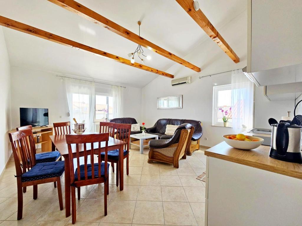 NOVO!!! Dobro nam došli dragi naši gosti u novouređene prostrane apartmane od 70m2 u obiteljskoj kući: veliki dnevni boravak povezan sa kuhinjom i blagovaonom te izlaz na veliku terasu od 16m2 s pogledom na more; spavaća soba sa bračnim krevetom i dodatnim balkonom, druga spavaća soba sa 2 odvojena kreveta, velika kupaona i hodnik. Na istoj etazi 2 potpuno ista apartmana sa novo izradjenim velikim terasama! Objekt se nalazi 3min od plaže i prve trgovine. Udobno i prostrano! Čisto i uredno! U sklopu objekta nalazi se sigurno i natkriveno parkirno mjesto. WiFi, klima, Tv satelit, roštilj, vanjski tuš, siguran parking i boravišna taksa uključeni u cijenu! Za sve dodatne potrebe ljubazni domaćini stoje Vam u svakom trenutku na raspolaganju!