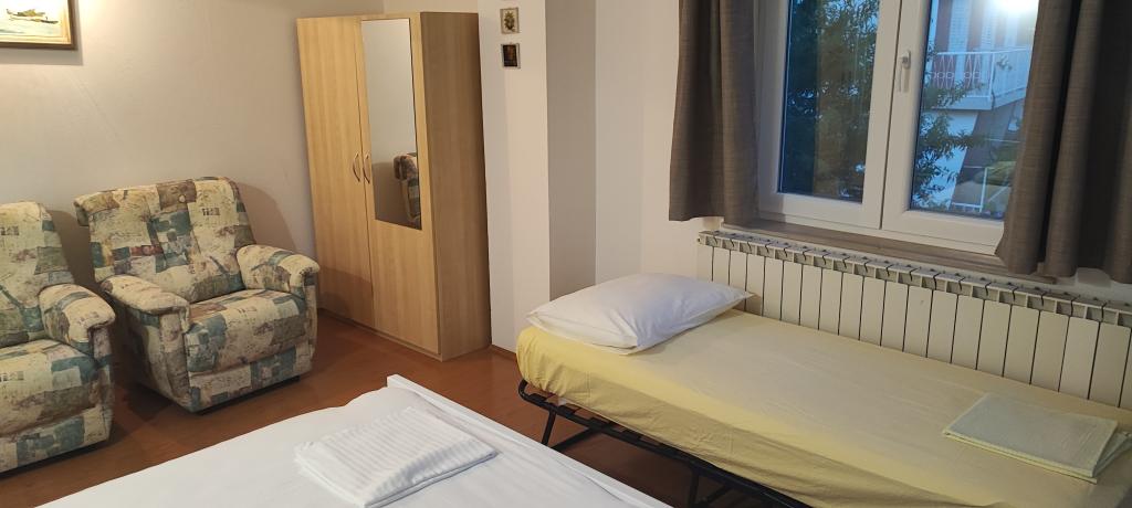 Pročitaj više Smještajne jediniceZa rezervaciju se uplaćuje depozit od 100 € na naš bankovni račun. Odlazak gosta do 10 sati ujutro. Ulazak u apartman od 14 sati ujutro. Mogućnost ranijeg dolaska i kasnijeg odlaska uz prethodnu najavu. Dodatni ležaj naplaćuje se 10 € .