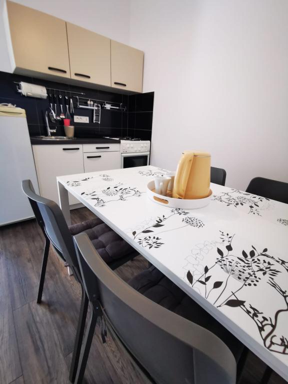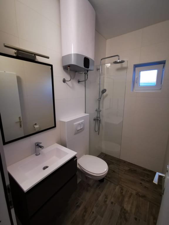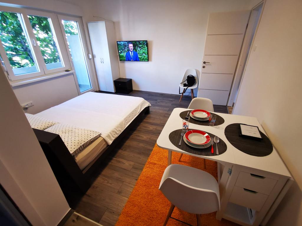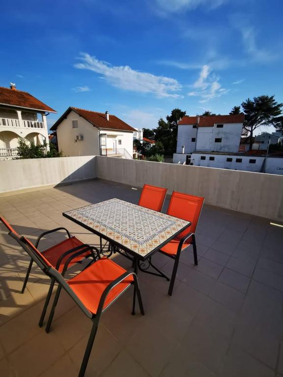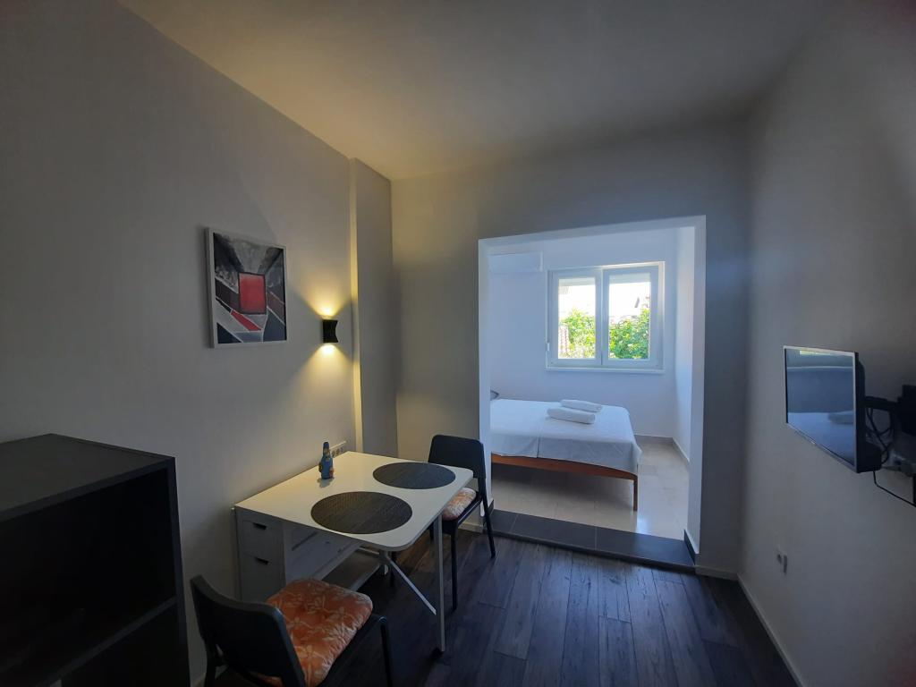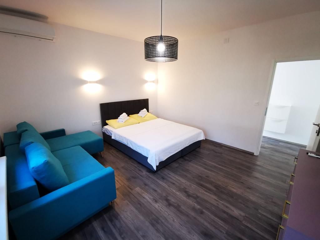Moderno uređeni apartman i studio apartman,u mirnom dijelu Vodica,u kući,blizu hotela Olimpija.Blizina plaža, od šljunčane,do betonske,te šetnjom 15 minuta nalazi se i pješčana plaža. U dvorištu dostupan parking za goste,te isto tako mogućnst korištenja garaže bez naknade.Zaseban ulaz za goste.