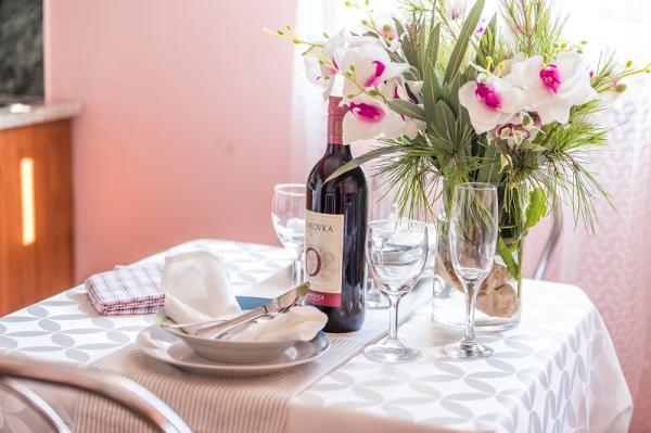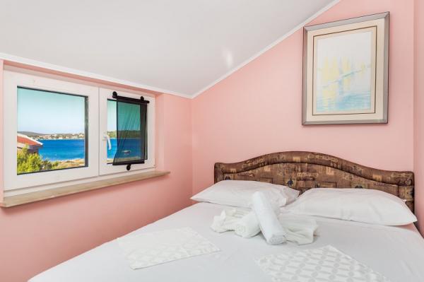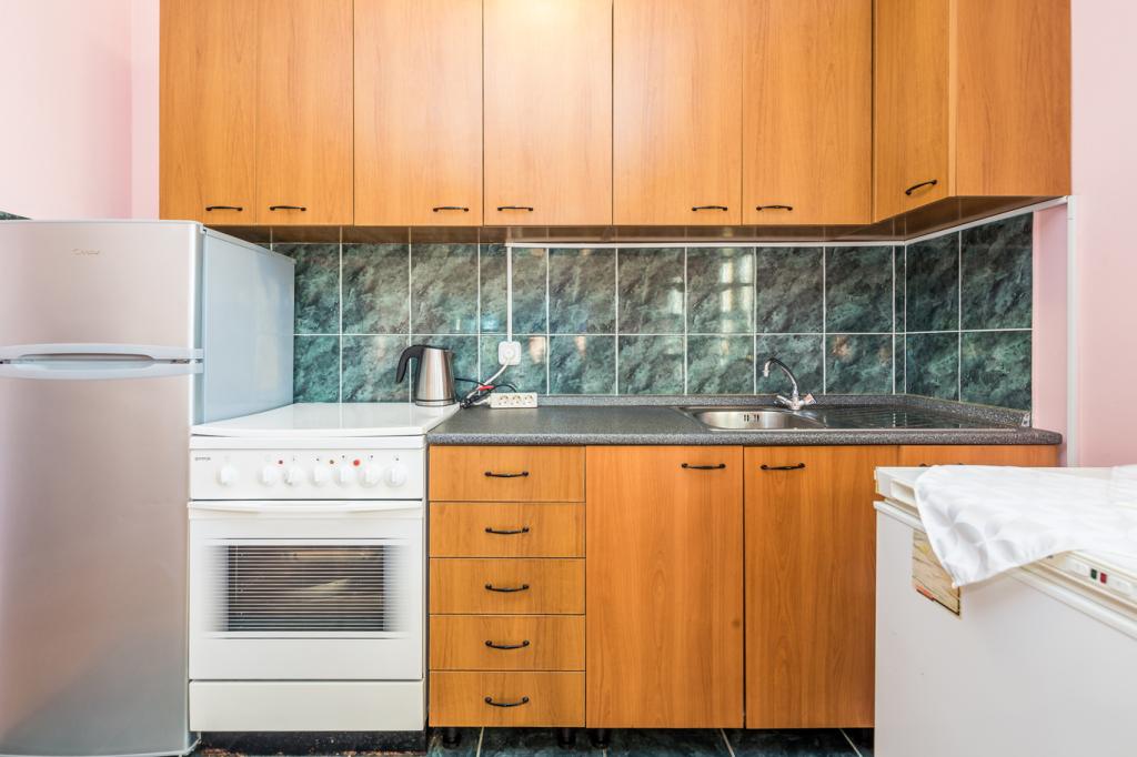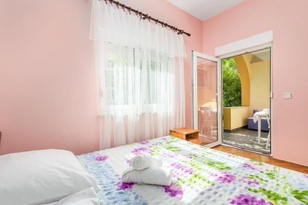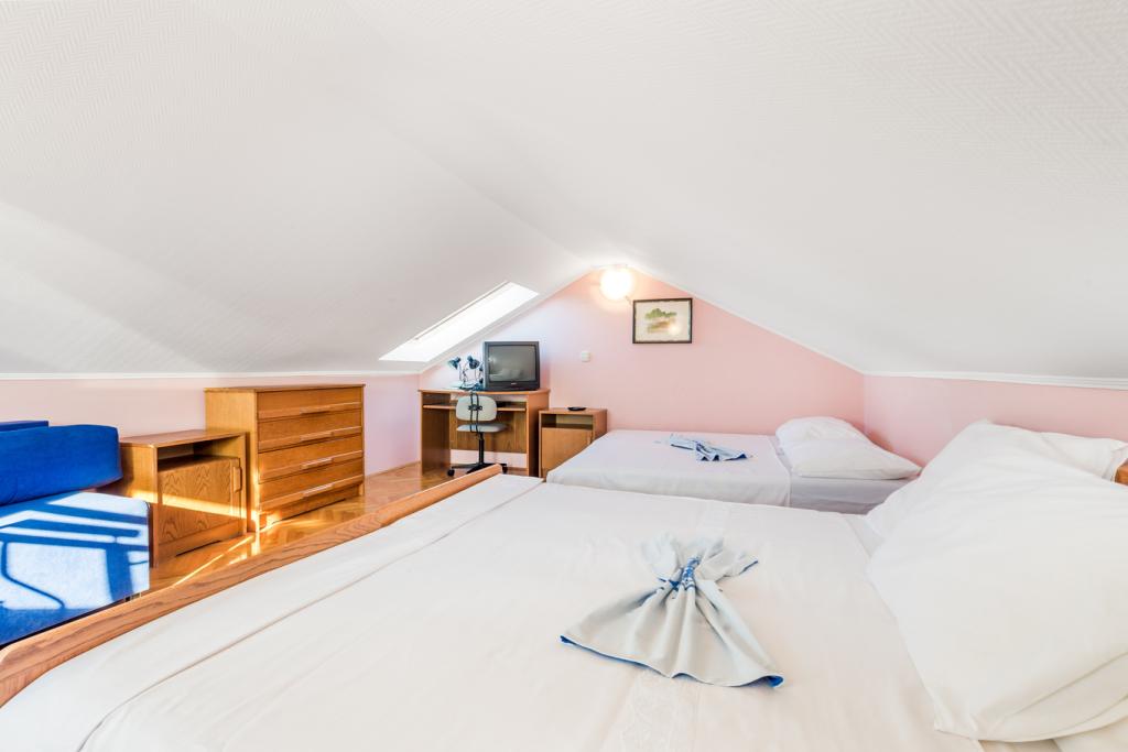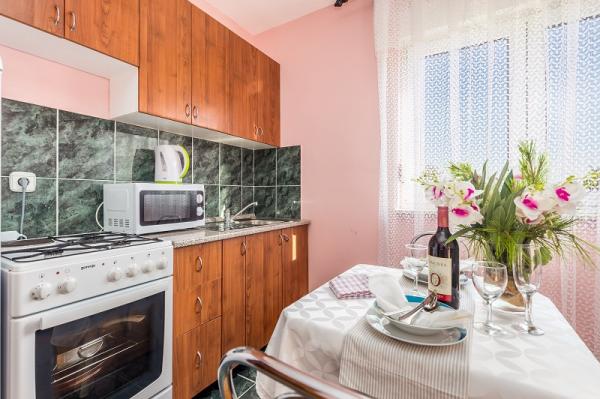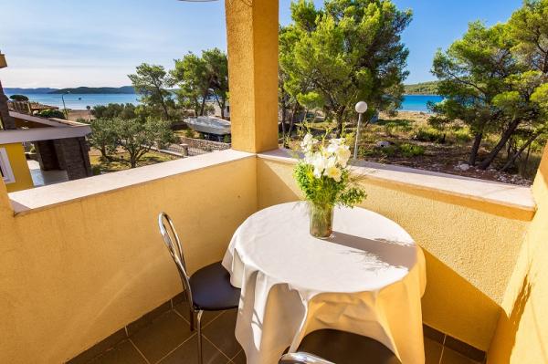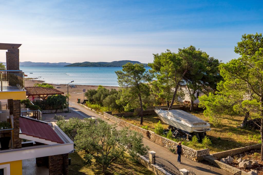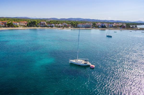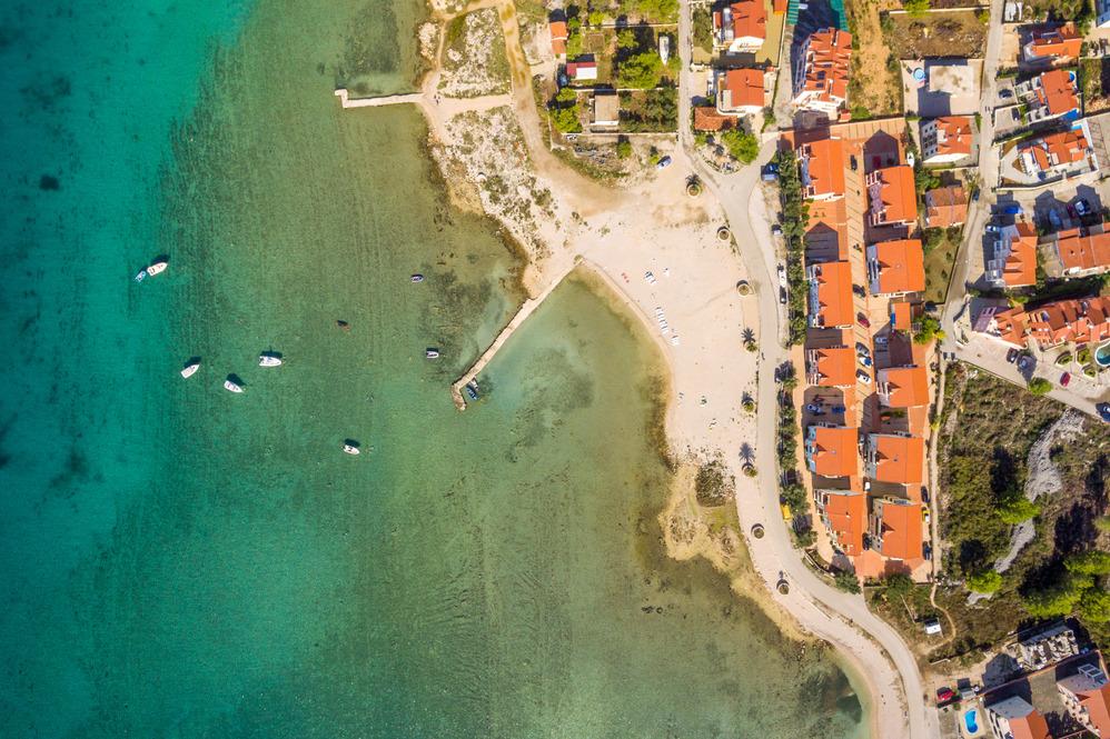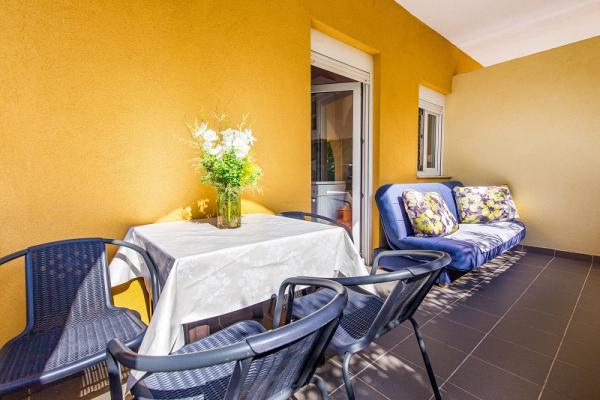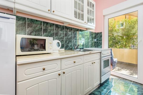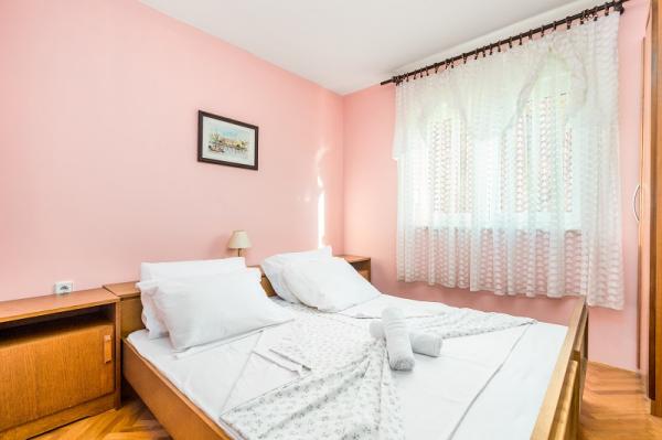 tri zvjezdice, prvi red do mora (50m do pješčane plaže), dvosobni i trosobni apartmani, potpuno namješteni (klima, tv, internet WiFi). Svaki apartman ima kuhinju, kupaonicu i balkon s pogledom na more. Na raspolaganju vam je i vanjski roštilj.