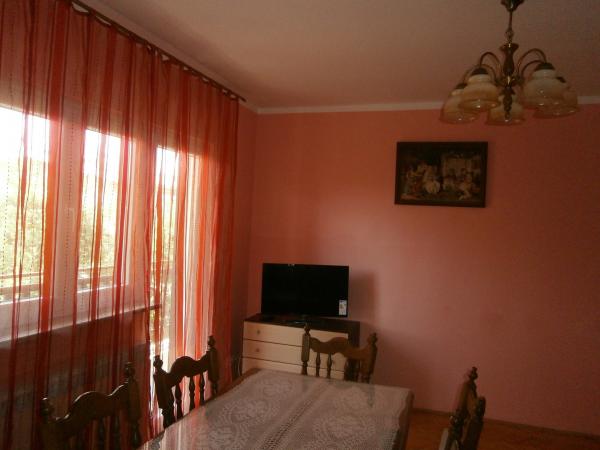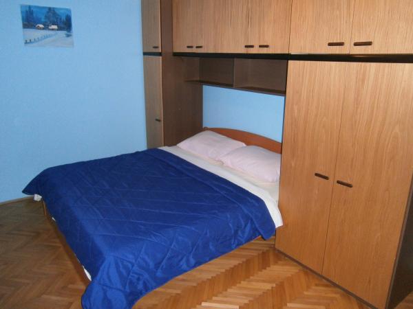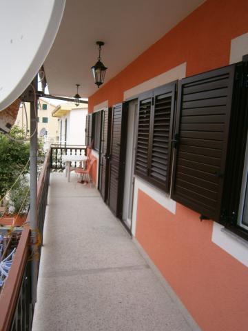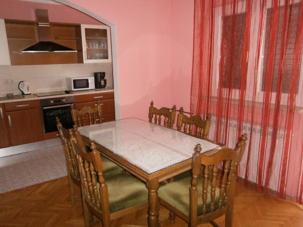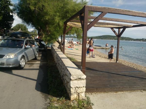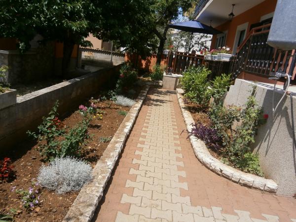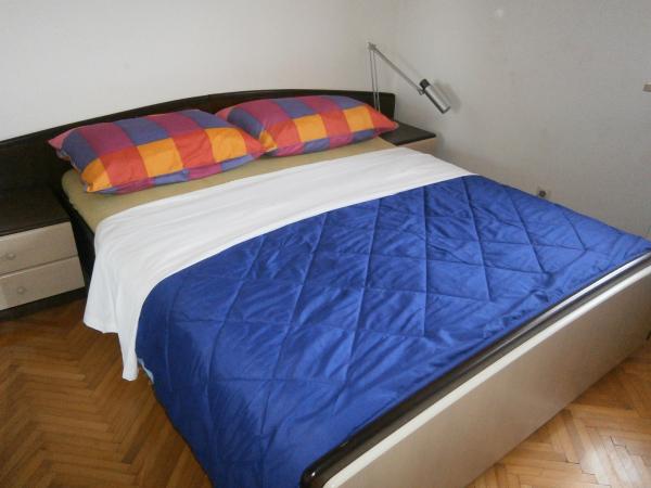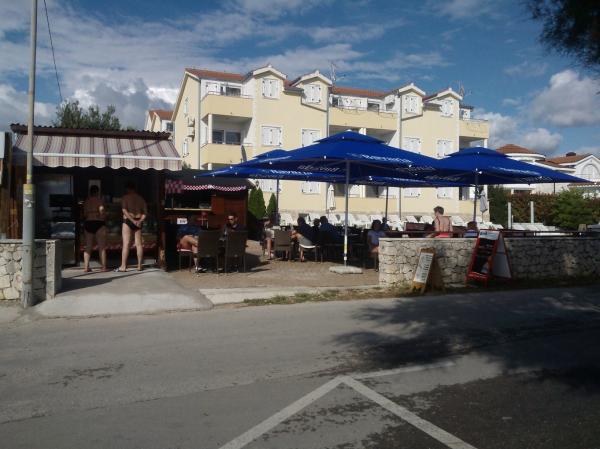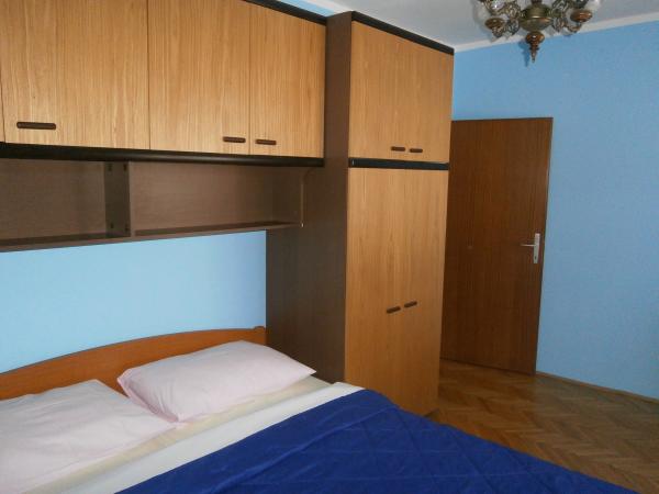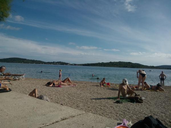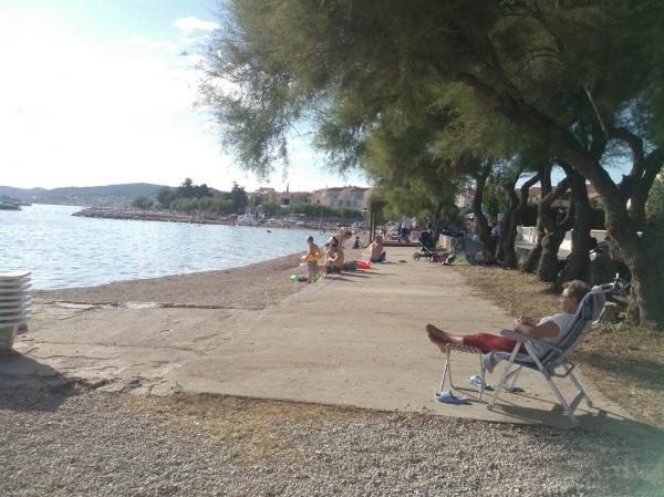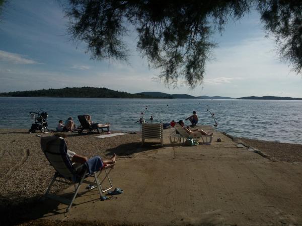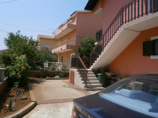 Kompletno opremljen apartman u mirnom predjelu Srime, 300 m udaljen od Vodica, 4 min. hoda do plaže. Opremljen sa svim kućanskim aparatima. Kroz dnevni boravak i spavaću sobu možete izaći na veliki balkon, dug 10 m. Dva parkirna mjesta su u dvoristu slobodni. Pomoćni ležaj košta 8€ po danu. Upotreba klima-uređaja 5€ po danu.
