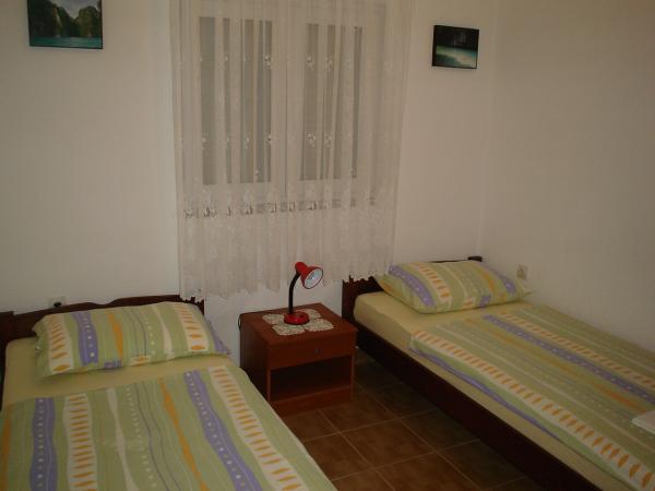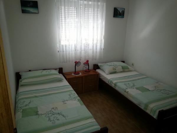 Novo sagrađeni potpuno uređeni apartmani u mirnom dijelu Vodica. Smješteni u blizini hotela Imperial i Olimpia. Svaki apartman ima dvije spavače sobe sa bračnim i odvojenim krevetima te dnevni boravak sa kuhinjom, kupaonicom i terasom. Mogućnost korištenja grilla ili peke.