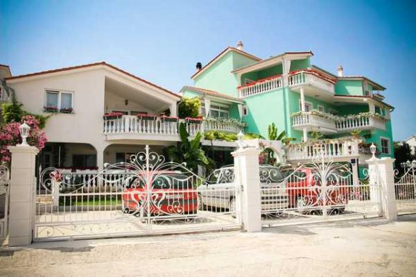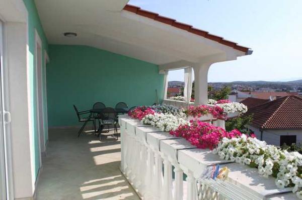 Novo adaptirani i moderno opremljeni apartmani u mirnom djelu Vodica. Objekt se nalazi na brežuljku sa predivnim pogledom na more. Parkiralište je u dvorištu a objekt je optimalno udaljen od centra grada i plaža tako da auto zapravo i nije potreban. Smještajni kapaciteti sadržajno prate moderne trendove u opremljenosti apartmana tako da su k dispoziciji sva pomagala koja se vjerojatno koriste i kod kuće klijenata . Na izboru je i oko 1000 satelitskih programa na nekoliko jezika i naravno wi-fi pristup internetu koji je u cjeni najma apartmana. Svi aparmani su klimatizirani a svaka spavaća soba ima i svoje kupatilo te balkon ili terasu bez obzira da li se radi o apartmanu sa jednom, dvije ili tri spavaće sobe. U sklopu objekta se nalazi i velika grill terasa koja je dana na uporabu klijentima uz prethodni dogovor sa stanodavcem .