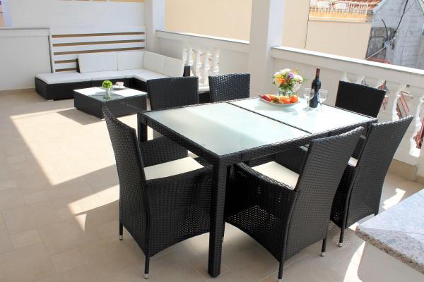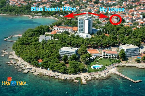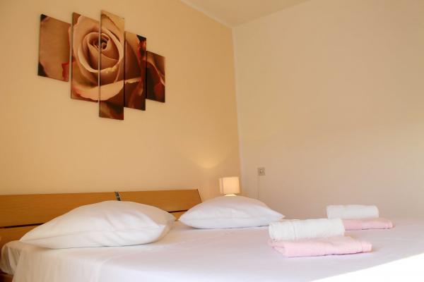 Smješteni smo blizu hotela Punte, udaljeni smo od centra i plaže 100m. Zahvaljujući našem položaju apartmana u samo nekoliko minuta dostupni su Vam svi sadržaji u mijestu. Svaki apartman ima balkon ili terasu s pogledom na zelenu površinu. Smijestene jedinice su opremjene sa klimatizacijskim uređajem, satelitom i TV, FREE WIFI te slobodnim koristenjem grila. Besplatni parking ispred kuce sa zatvorenim dvoristem. Provedite vaše ljetovanje u našim apartmanima. Dobrodošli !!!