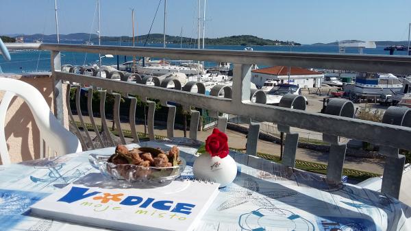 Kompletno i suvremeno opremljeni apartmani u Vodicama, smješteni prvi red do mora uz ACI marinu. Objekt se nalazi između centra grada i plaže (samo 100 m od centra i 100 m od istočne plaže Hangar). Svi apartmani imaju širok pogled na more i cijelu panoramu.
