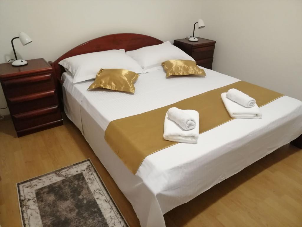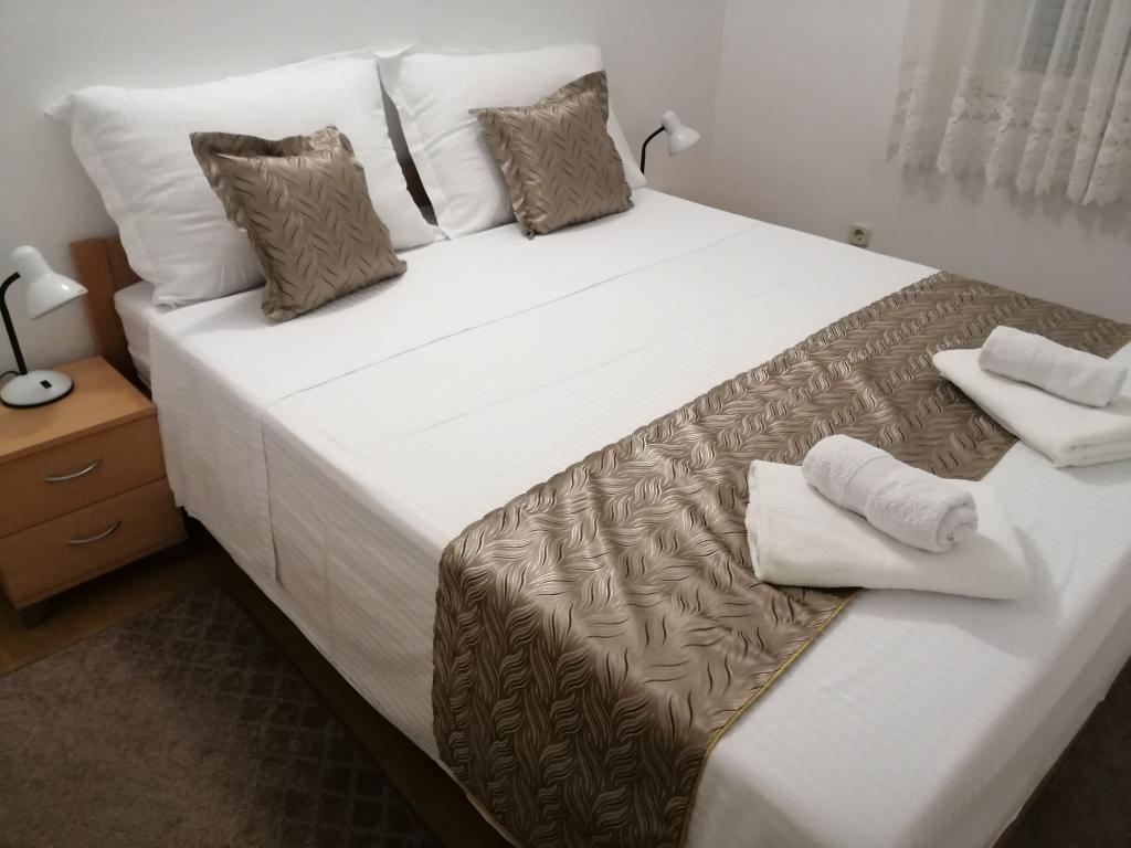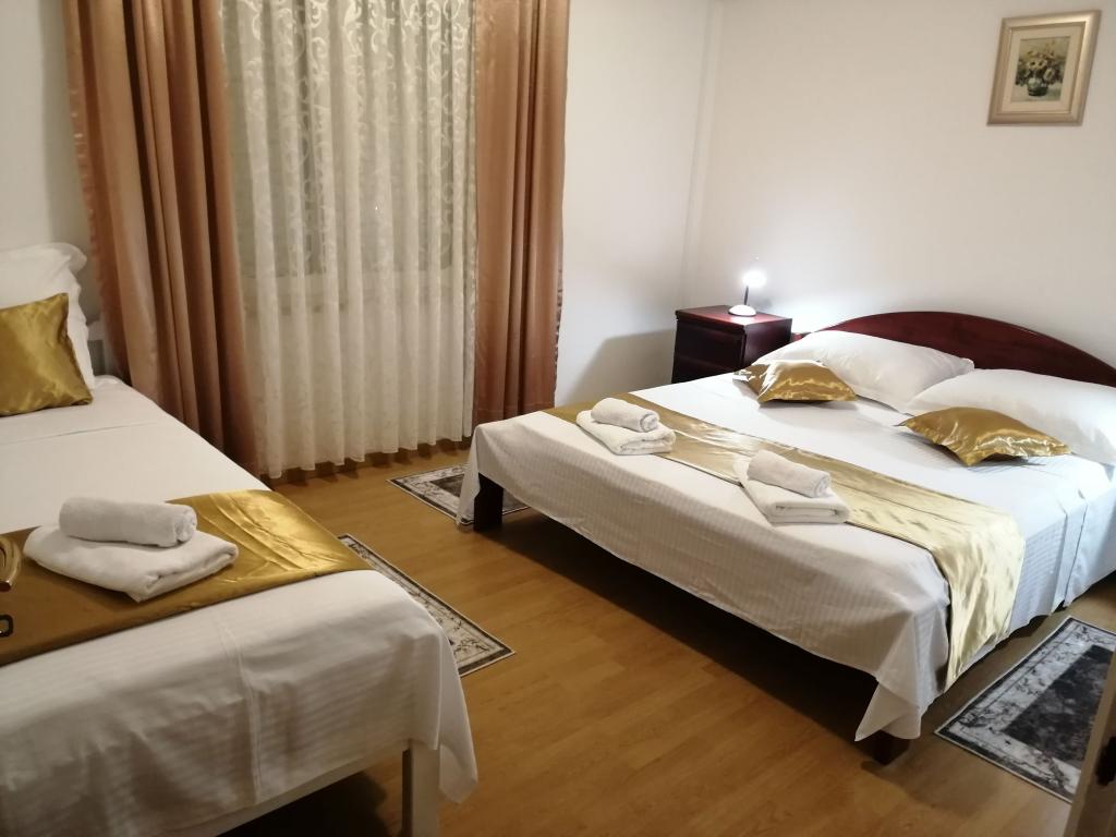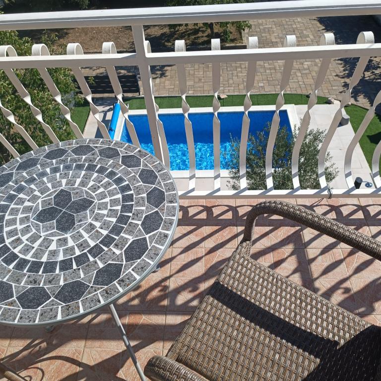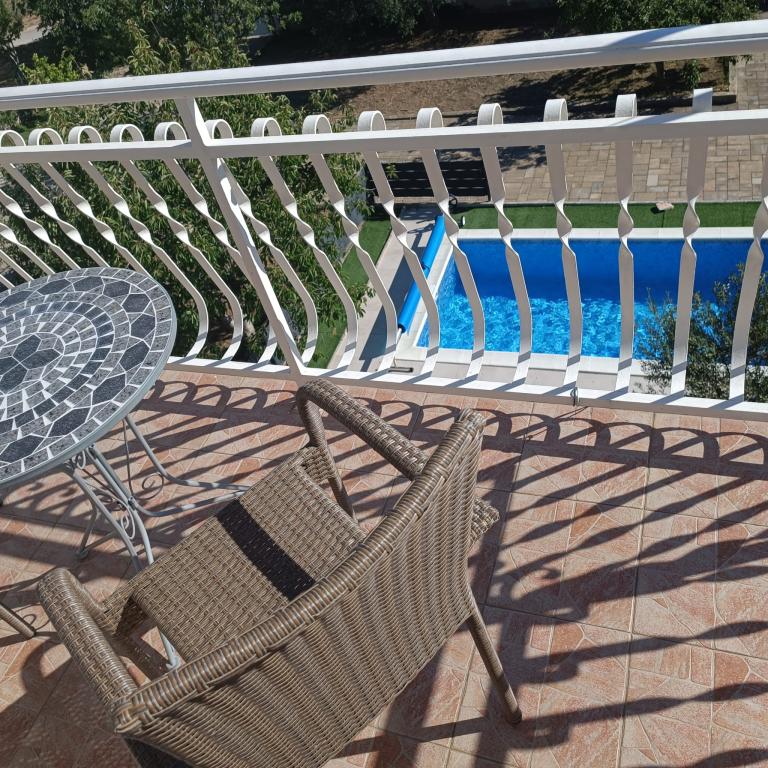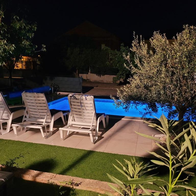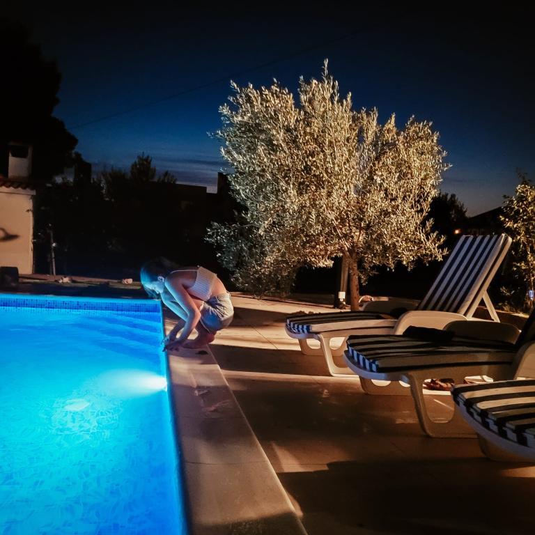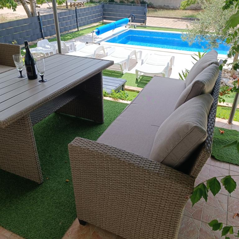 Novouređeni veliki apartmani s vanjskim BAZENOM SAMO ZA VAS!! KAO KUĆA ZA ODMOR!! Kompletno NOVOUREĐENE kuhinje s novim aparatima (frižider,zamrzavač,pećnica ,ploča za kuhanje,mikrovalna pećnica,kuhalo za vodu, perilica posuđa, perilica rublja, napa.Posuđe i pribor za kuhanje. Dnevna soba sa kutnom garniturom koja se po potrebi razvlači u prostrani ležaj.Novi TV sa satelitskim programom. Spavaće sobe s prostranim bračnim krevetima. Posteljina. Sve sobe su klimatizirane. Dvije kupaonice sa WC i walk in tuševima novouređene. Perilica rublja, pribor za peglanje, sušilo za kosu. Usisivač i sredstva za čišćenje,toaletni papir, sapun,ručnici. Na raspolaganju je i terasa od 30 m 2 sa vrtnim namještajem, kao i gril,ležaljke uz bazen. Ogromna okućnica 1300 m 2 sa puno mediteranskog drveća. Parking u dvorištu BESPLATNO!!. Aerodrom Zadar i Split udaljene su oko 60 km . Blizina na nac.park-Krka i Kornati