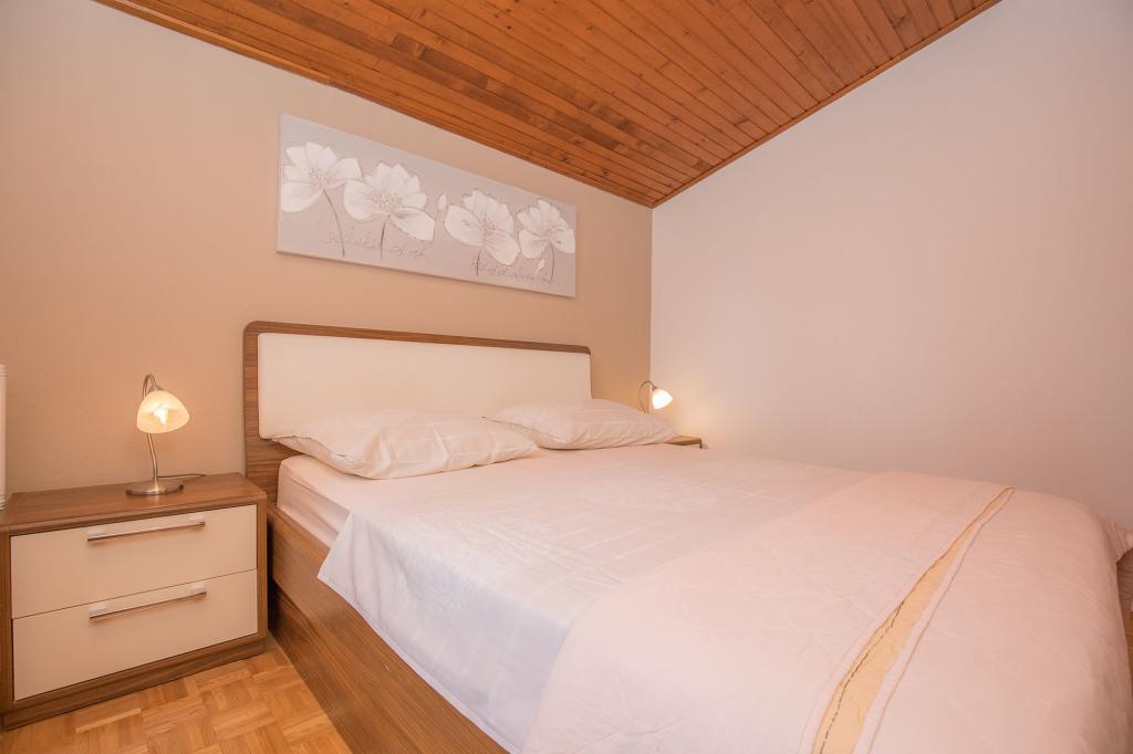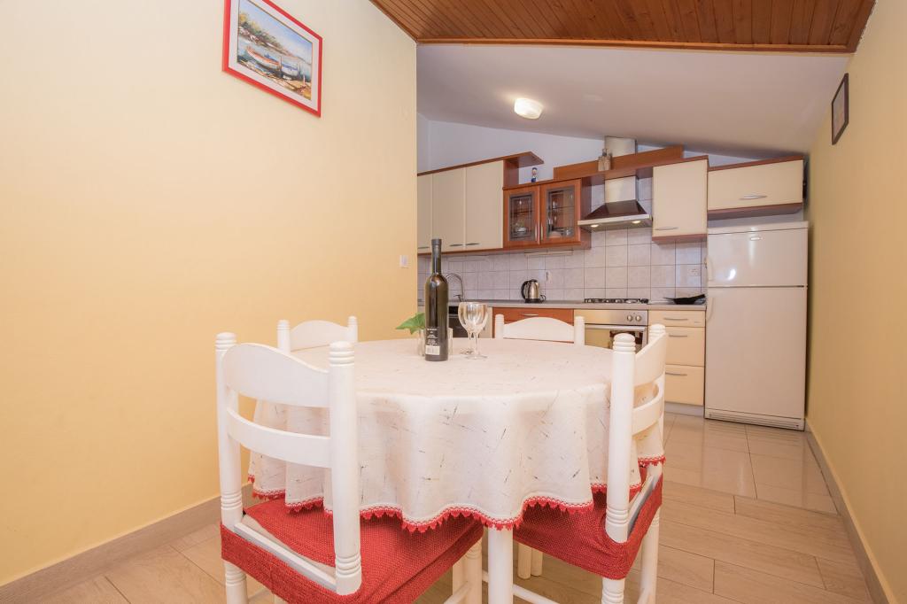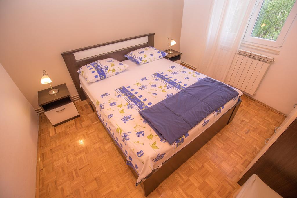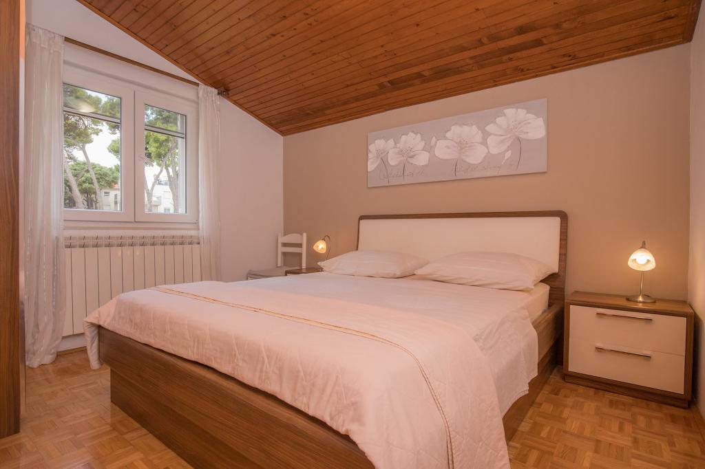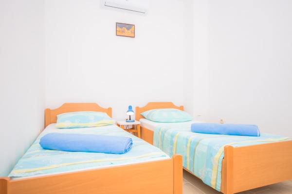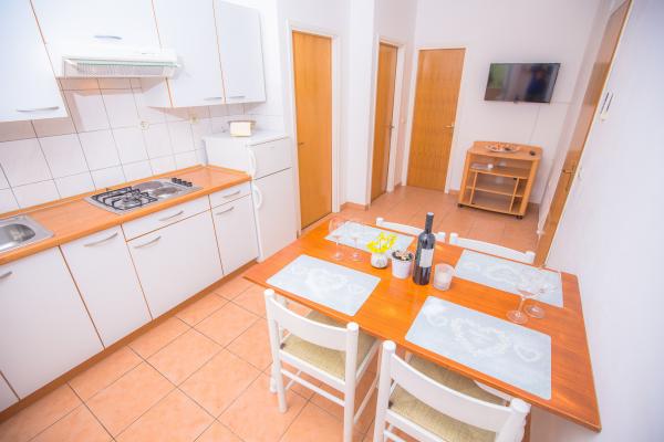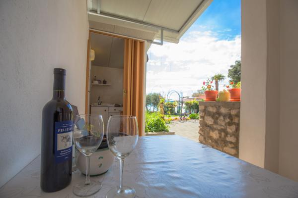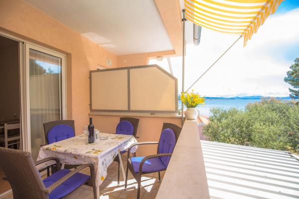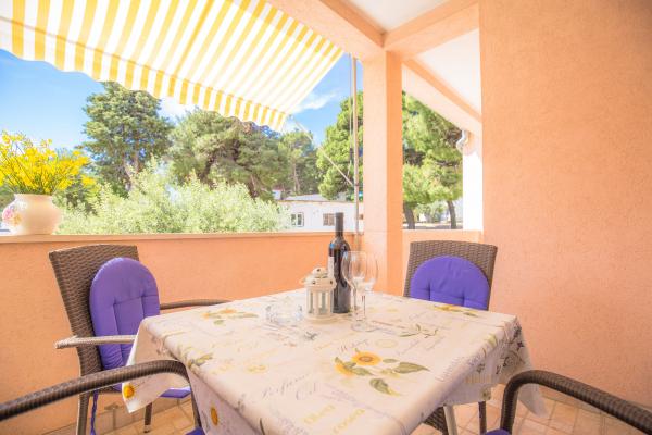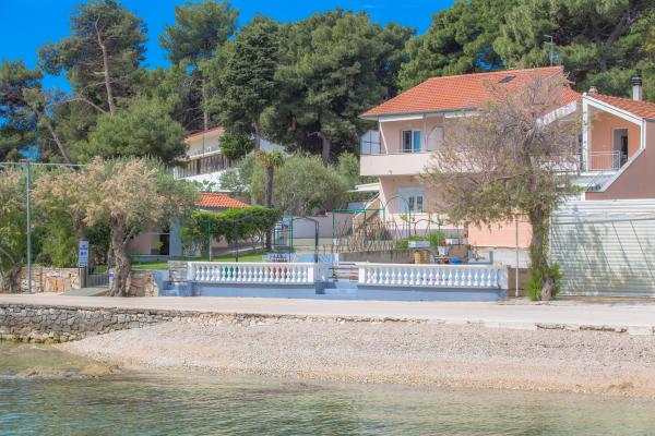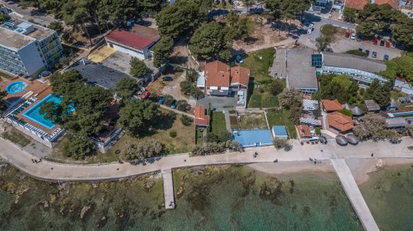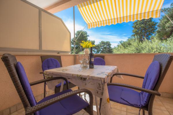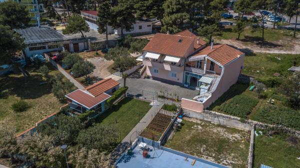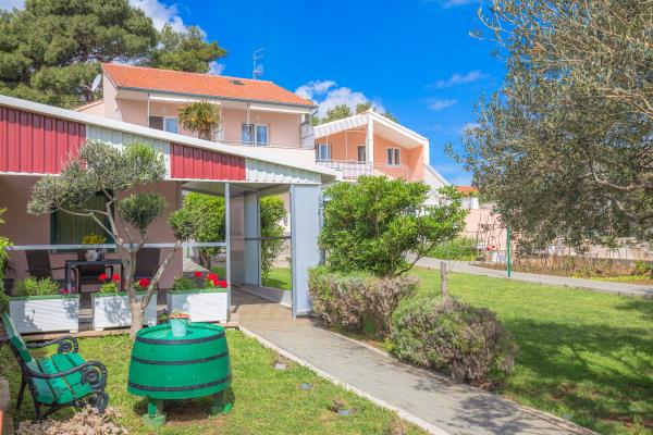 Objekt je smješten u borovoj šumi blizu hotela Punte direktno na plaži. Sastoji se od 6 apartmana i jedne sobe sa kapacitetom od 25 ležaja. Odlazak iz apartmana je u 10 h a ulazak u 13 h. Apartmani su kompletno opremljeni sa posteljinom, ručnicima. U cijenu je uključeno finalno čišćenje, parking, boravišna taksa, Internet. Svaki apartman ima svoju terasu ili balkon s pogledom na more. Plaža je šljunkovita, betonska, i u blizini pješčana i smještena je direktno ispred apartmana u sjeni borove šume . U vrtu posjedujemo tuš i roštilj. Udaljenost plaže je 5 m. Centar mjesta udaljen je 100 m. Restorani, marketi, pošta, banka itd 100 m. Najbliži restoran 10 m.