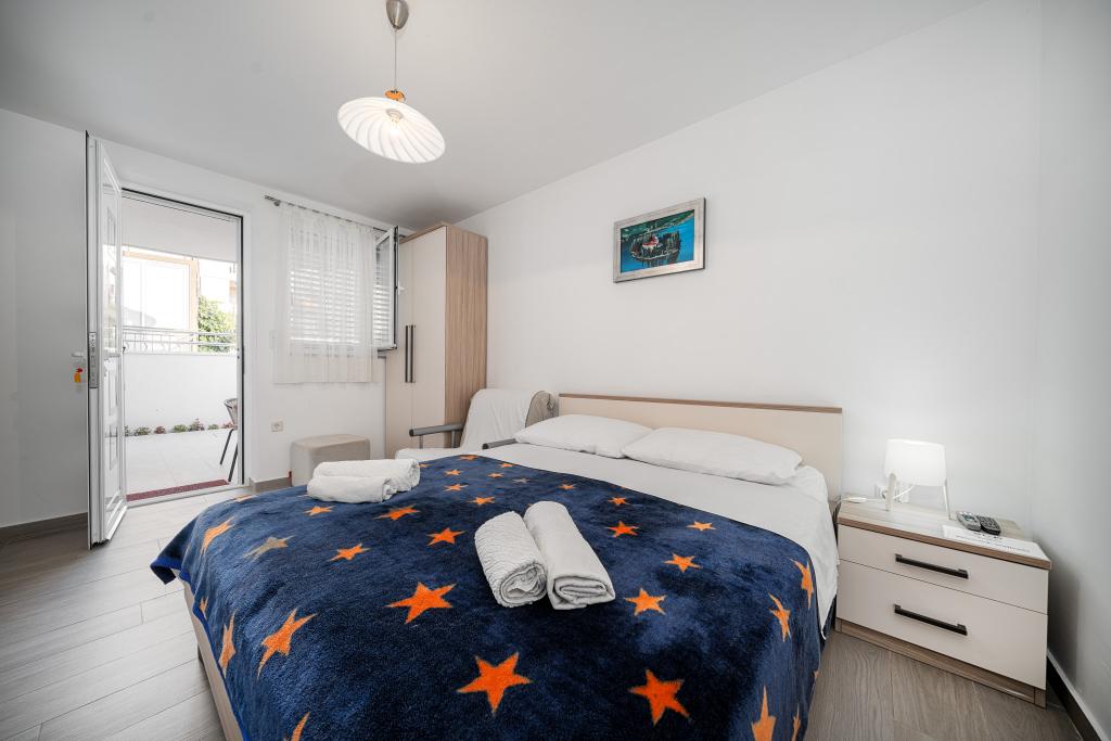 Apartmani Marina se nalaze u najljepšem i najmirnijem dijelu Vodica, 50 metara udaljeni od Plave plaže i 5 minuta hoda od centra mjesta. Kuća je oruženena uređenim zelenilom i ima prekrasan pogled na more. Svi bitni sadržaji se nalaze u neposrednoj blizini objekta. Veselimo se Vašem dolasku...