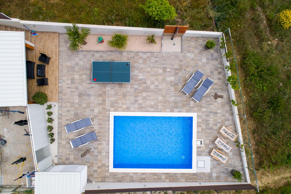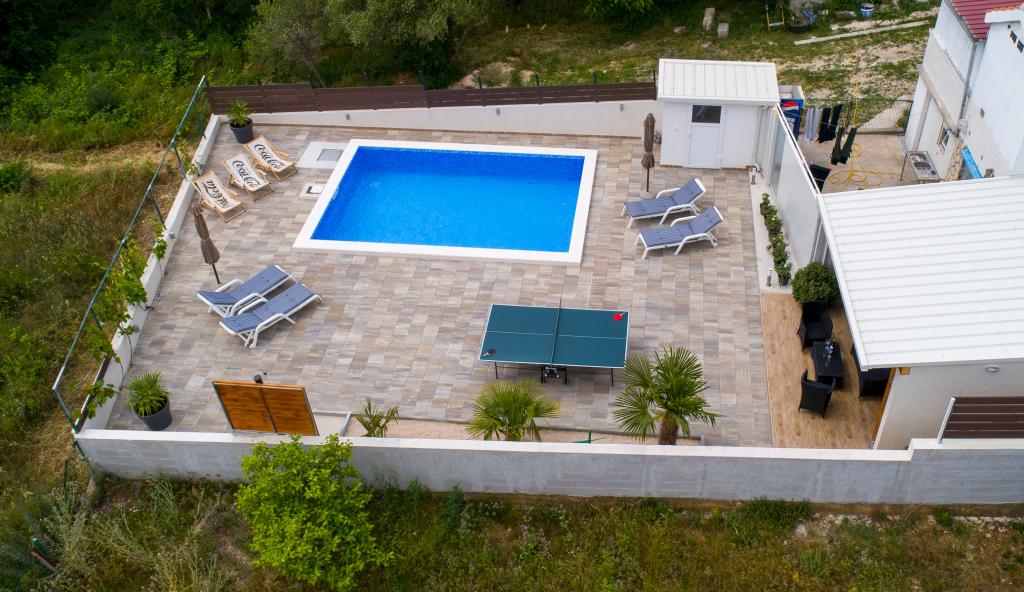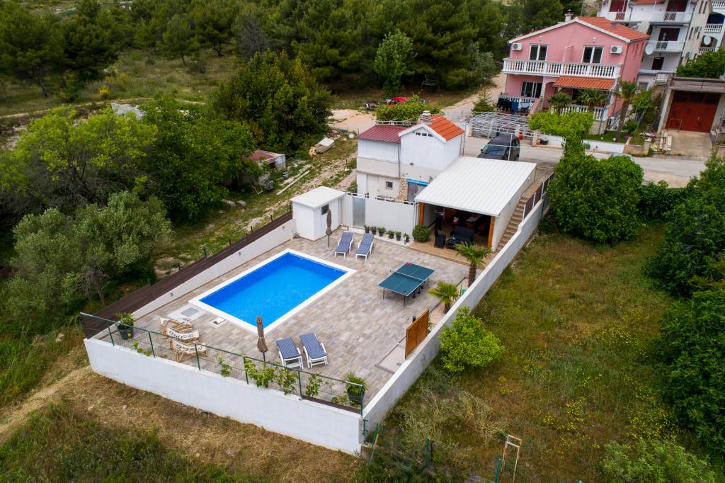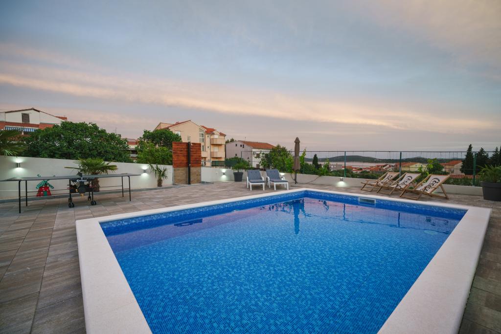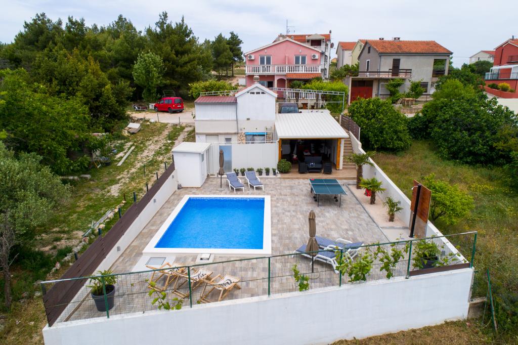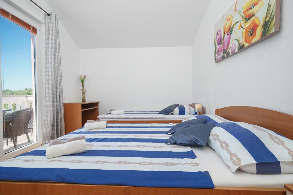 Kompletno i suvremeno opremljeni apartmani smješteni u mirnom predjelu Vodica. Površina svakog apartmana je 50 m2, svaki se sastoji od dvije spavače sobe, kuhinje sa blagovaonicom i terase sa pogledom na more. Kapacitet je maksimalno 5 osoba. Apartmani su opremljeni sa internetom, tv/sat i klima uređajem. Natkriveni parking se nalazi ispred kuće.