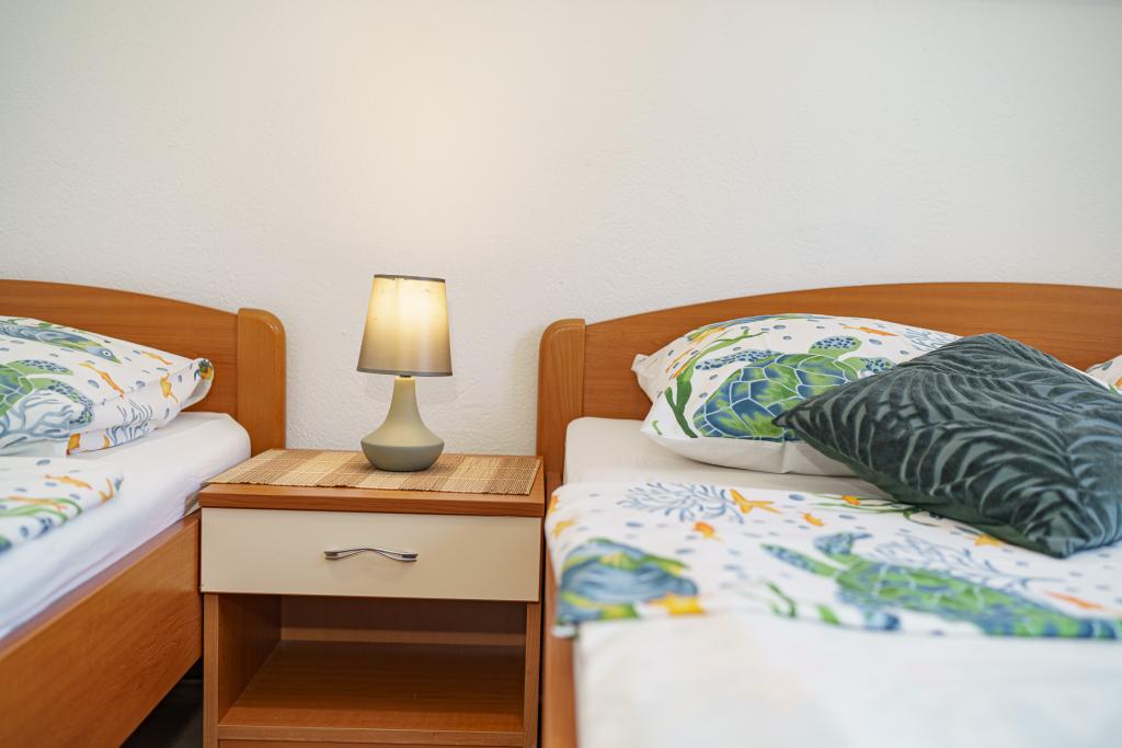 Što reći, mogu samo pohvaliti sve što se tiče čistoće,mira i domaćina. Apartmani se nalaze blizu mora a i kad se odmaraš imaš pogled na more. Za auto se ne moram brinuti jer ima parkirno mjesto. Meni je vrlo važno što domaćini imaju i svoj lokal pored mora tako da se ne moram brinuti ni za hranu koja je jako ukusna. Gostujem ovdje vec 10 godina i sljedeće ću dolaziti.