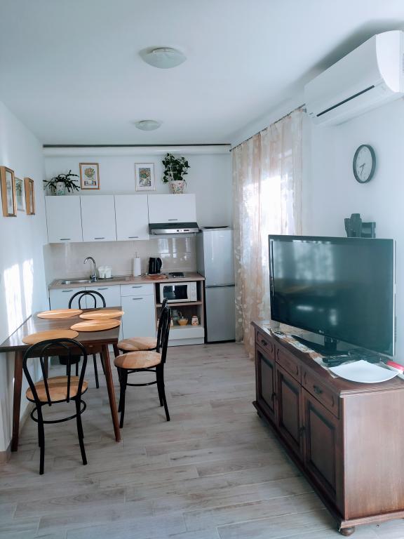 Ne preporučam noćenje na ovom mjestu. Apartman nije bio pripremljen za dolazak gostiju. Puno prašine na daljinskom upravljaču televizora, na policama i podu. Nema tople vode, kuhalo za vodu, WI FI pristup, osnovna kupaonska oprema. Stari škripavi, izgužvani kreveti, poderana posteljina. Vrlo neugodna gazdarica. Nakon isticanja da stan nije pripremljen za nas i pokazivanja koliko je stan čist, izbačeni smo iz stana. Imali smo 2 sata da napustimo stan. Žena samo želi zaraditi na ljudima. Nula pristojnosti kada su u pitanju standardi najma stanova. Nikada ne iznajmljujte stan tamo!!!