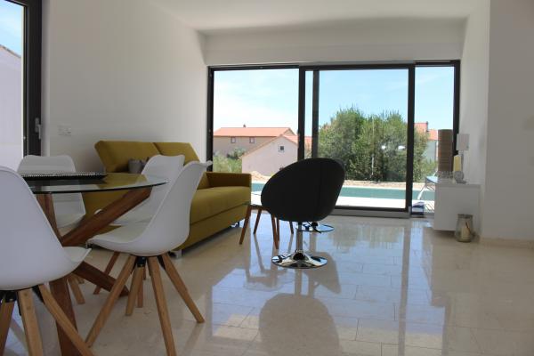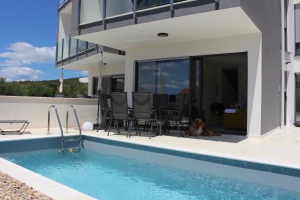Luksuzni odmor u apartmanu Mateja 80qm. Apartman ima 2 spavaće sobe, veliku dnevnu sobu sa ugradbenom kuhinjom. Apartman je prvoklasno uređeni i namješteni. Apartmanu pripada bazen.