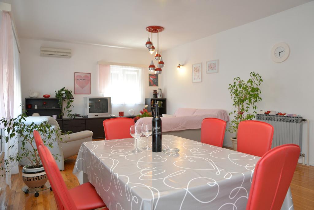 Pročitaj više Smještajne jediniceRezervacija na e-mail, WhatsApp i Viber. Akontacija: 30% od dogovorene cijene. Plaćanje u eurima. Pomoćni ležaj 15€. Dolazak od 14 sati. Odlazak do 10 sati. Držanje malih kućnih ljubimaca je dozvoljeno u dogovoru s vlasnicom. Mogućnost korištenja perilice rublja u dogovoru s vlasnicom.