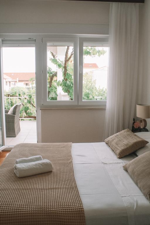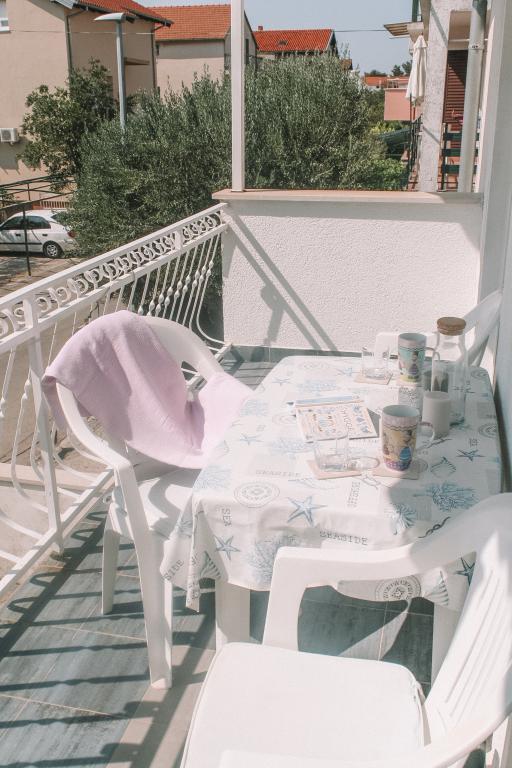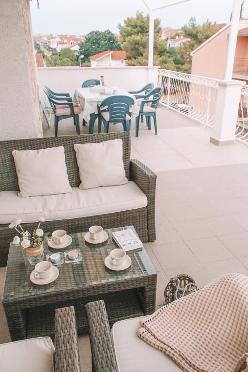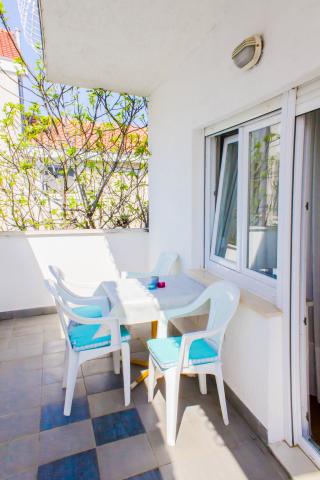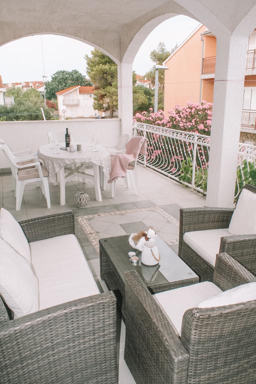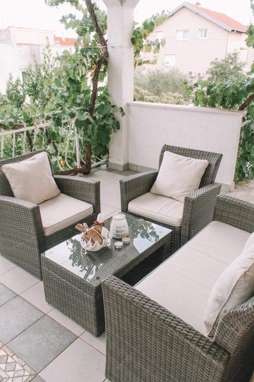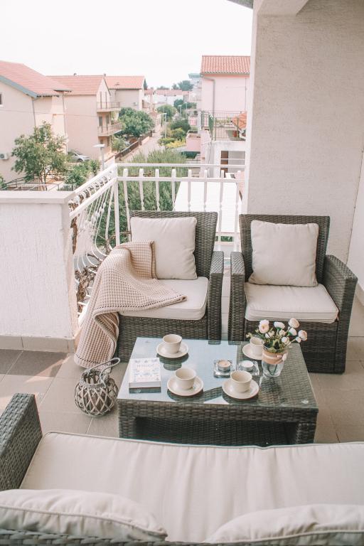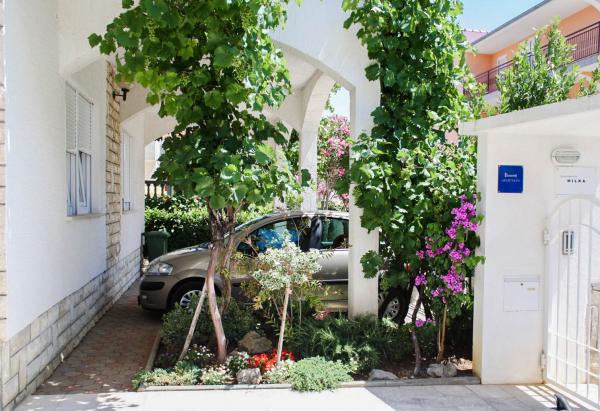 Apartmani se nalaze u mirnom dijelu Vodica. Objekt ima velike terase 25m2, garažu, parking mjesta, veliki zidani grill. Apartmani su prostrani, opremljeni (TV-SAT, klima, WIFI internet).