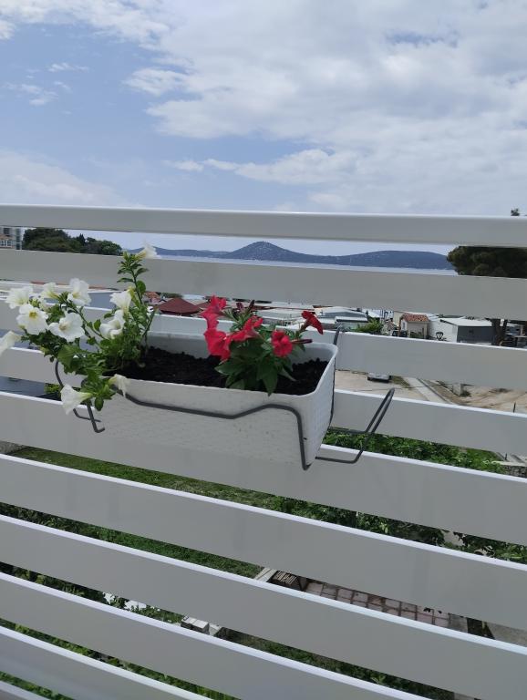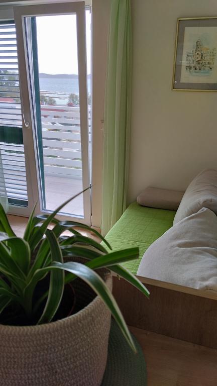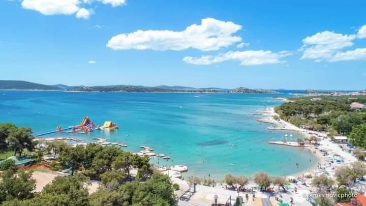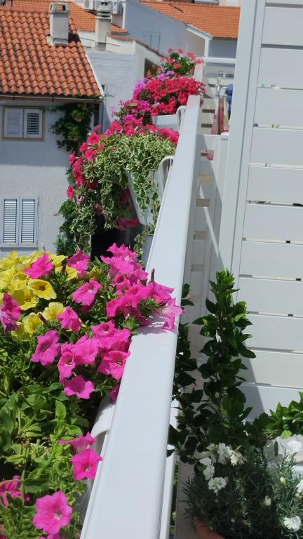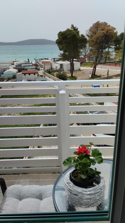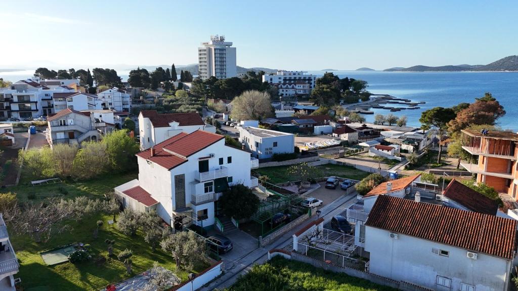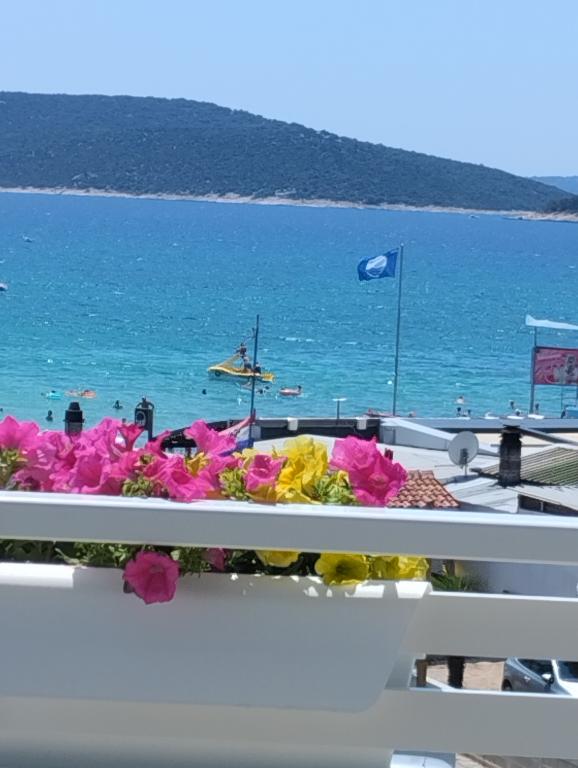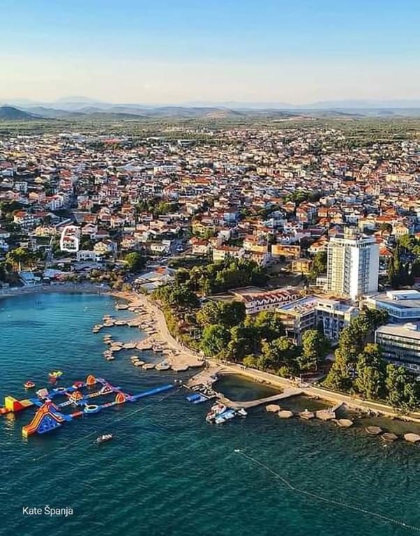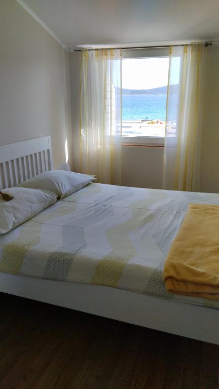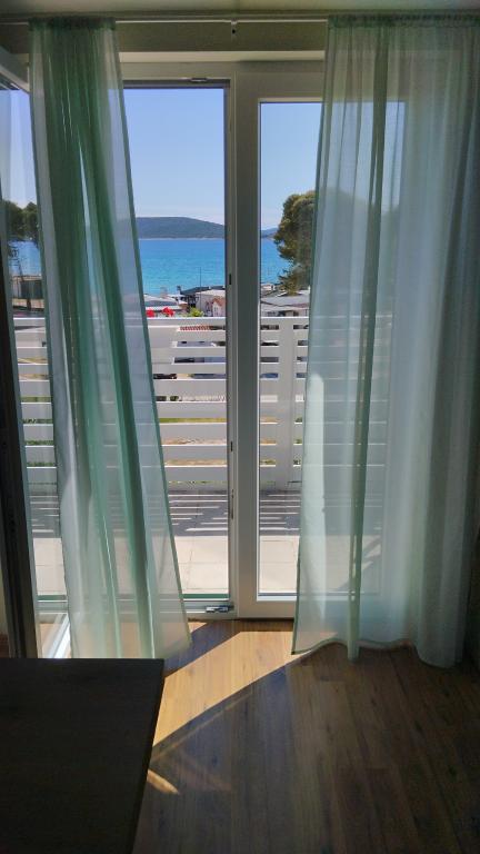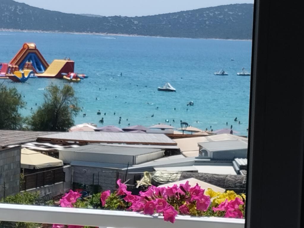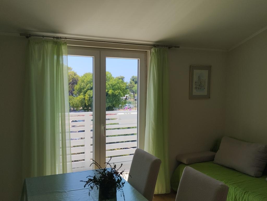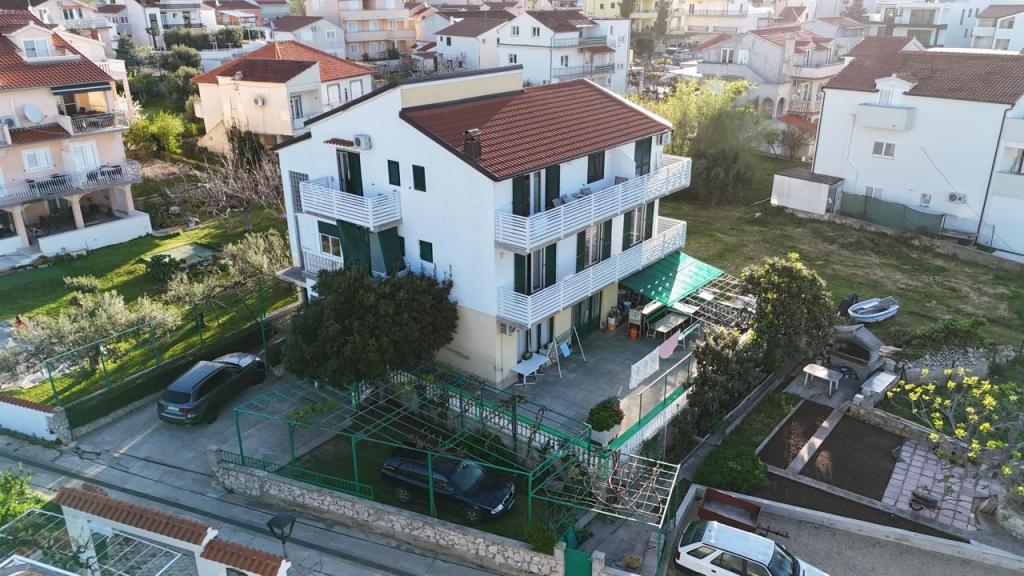 Dva apartmana na drugom katu obiteljske kuće na samoj Plavoj plaži.Dvosobni apartman je nedavno renoviran a jednosobni prošle godine tek uređen. Plaza je na 70 tak metara od kuće a centar grada 600 m.Na plaži se nalaze brojni ugostiteljski objekti i sadržaji za djecu kao i posebno uređena plaža za djecu. Plaža ispred kuće je pješćana,a malo dalje ,20tak metara i šljunčana. Ulazak u ap. moguć nakon 12 h a odlazak do 10 h.
